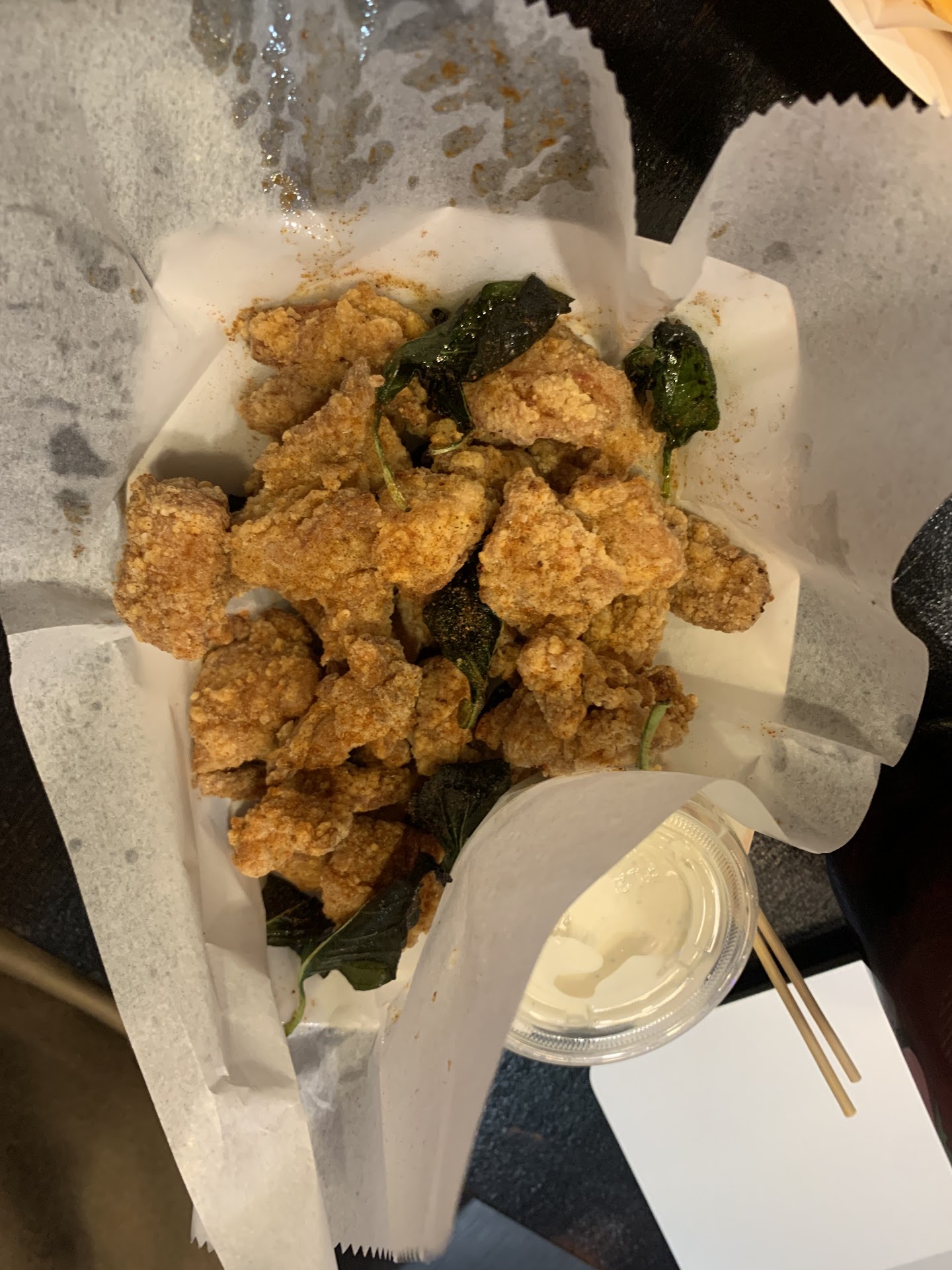 I did taste a hint of pre-breaded nuggets and make sure you ask for less ice when ordering the frappe. It was like a slushy, I had to wait until it melted before it was at...