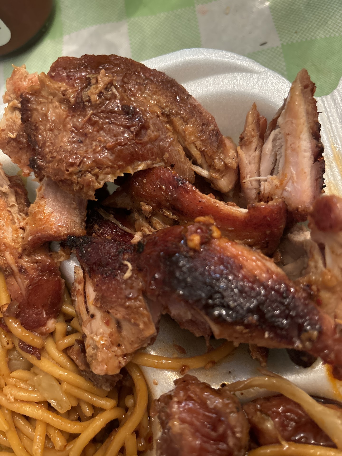 First time trying this spot and definitely my last. Got the 3 entree with fried rice and an order of wings to see what this place was all about. The bourbon chicken was covered in sweet sauce and was super salty, the coconut fried shrimp was super sweet with an odd after taste , the spicy chicken was the better of the three but was more batter than chicken. The rice was the best part of the platter honestly. On to the wings, tried one wing and looked at the bone just to see a pink bloody bone with I cooked meat on it. Checked a second bone, same thing, blood in bone and undercooked meat. How do you mess this up , itâs the easiest dishes to make! The wing I did eat had an odd flavor as well like they were experimenting with different things. Sorry but the dishes were not up to standard for even a...