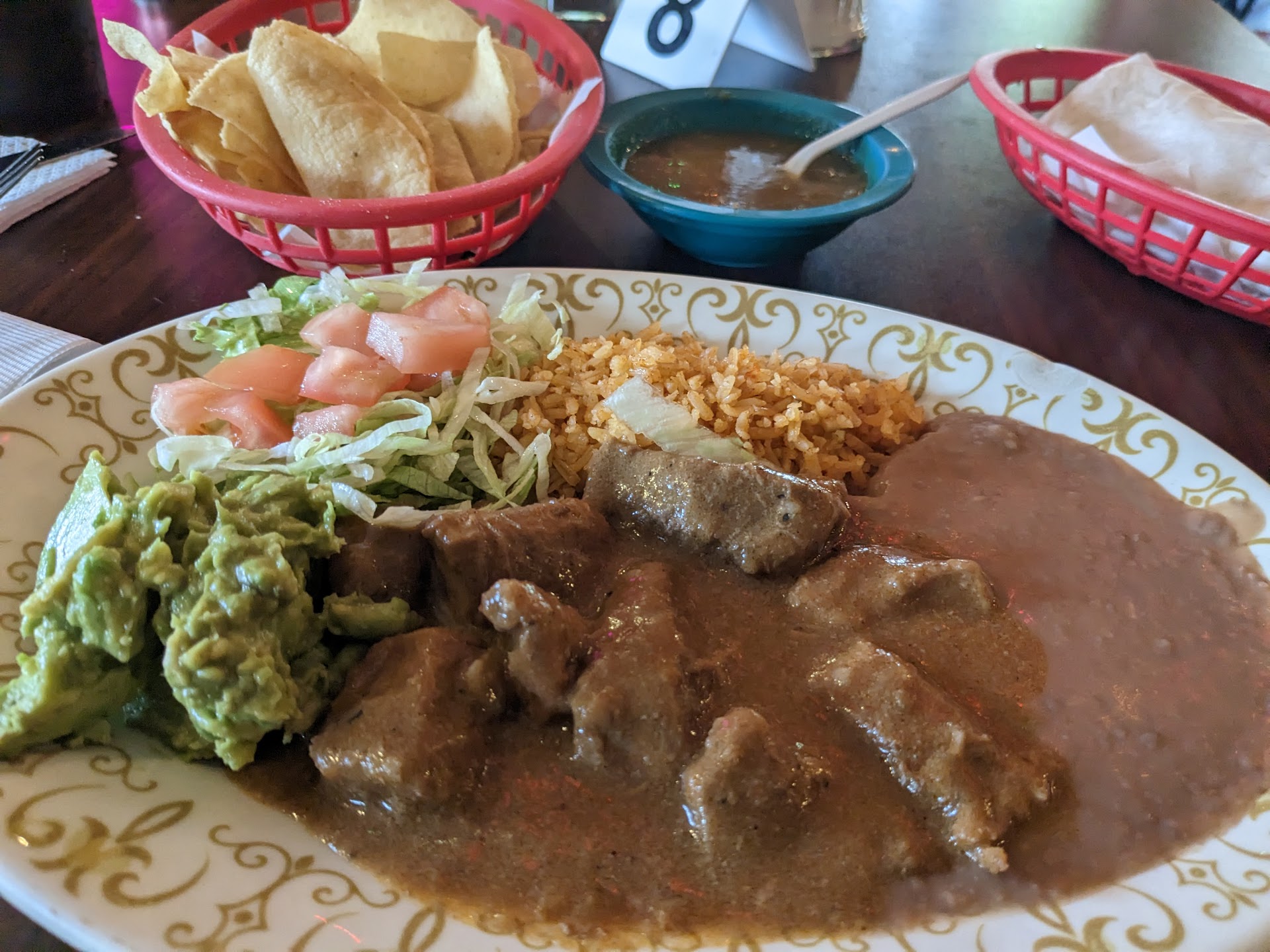 Delicious but skimpy servings. ... :( . The sign says "since 1973", but it was my first visit despite spending a lot of time in the neighborhood over the last 20 years I Stopped by on a Friday evening. It was Cinco De Mayo and with everyone on the prowl for margaritas, I was avoiding most of my regular places. At first I was only one of two tables in the place. With an hour before closing it seemed to be winding down when I first entered. But it filled up pretty ok after I got there. Small dining area with subdued lighting and decor. Definitely been there for a while, so I felt right at home and had high hopes the establishment's longevity fortold of a great off the beaten path experience. Alas, it was not to be. I so loved the food, BUT for a full price ($12) evening dinner plate ... I can honestly say I've had more rice and beans on a kids plate at most other restaurants. Which is sad cause the food was soo good. The Carne Guisada was obviously slow cooked with care and the gravy was thick, flovorable and excellent. The rice had a great roasty toasty flavor but was entirely tender and moist. The homemade guacamole was nice fresh and chunky. The salsa was of the warm stewed variety and had it's own unique seasoning and the chips were hot and fresh The staff was very friendly and attentive, but the sodas were single served in a can. No refills. Despite the minor drawback I was ok with all except the size of the plate. I seemed like a single spoon of rice, a single spoon of beans and a single spoon of Carne Guisada .... as I wrote earlier, It was almost kid sized in so many ways. I'll probably try it again a few more times to see if it was just an...