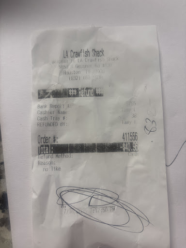 Ā Ā Ā Read moreI will never go again. I took my friend there for crawfish, and I ordered the shrimp and catfish basket. When I got my food it looked very appealing but when I taste it, it wasn't. The shrimp breading was hard and gummy. I gave one to my friend so she could see if it was the same to her. It was! I told the waiter and he went to get the manager. The manager stated that the shrimp looked fine and he had to take it to the cook. Being that my parents are professional cooks and chefs and have their own restaurant I immediately knew what was wrong with the shrimp; the breading was old. I explained this to the manager when he came back and said that I was going to be charged for the horrible shrimp eaten along with an additional 25%. He further went on to explain that he knows that the breading is not old because it changed out daily! Wrong answer manager! Any type of breading needs to be changed periodically throughout the day! After your damp food hits it, it puts moisture in the breading causing it to clump. After a couple of batches, change the breading! If you don't, you get shrimp that is hard and gummy! Rule of thumb, if the breading becomes clumpy, it's time to refresh it. And to add further I order catfish and got tilapia. Some of us seafood fanatics know the difference in the two from texture and taste. It was a horrible experience that I paid full price for and barely ate the horrible meal. This place is good for crawfish only! I do not recommend anyone to go here. The way management treated me yesterday was...