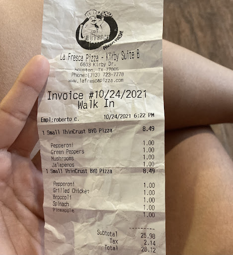 My review concerns solely the quality of the pizza and nothing else. That being said, the pizza is indistinguishable from Dominos. We ordered a medium pepperoni pizza and if you served me a slice of Dominos thin crust pepperoni and and a slice of LaFresca thin crust pepperoni pizza, I would not be able to tell which is which. That's great for people who like Dominos, however, for people who hate Dominos/Little Caesars/Pizza Hut, like myself, it's not so good.