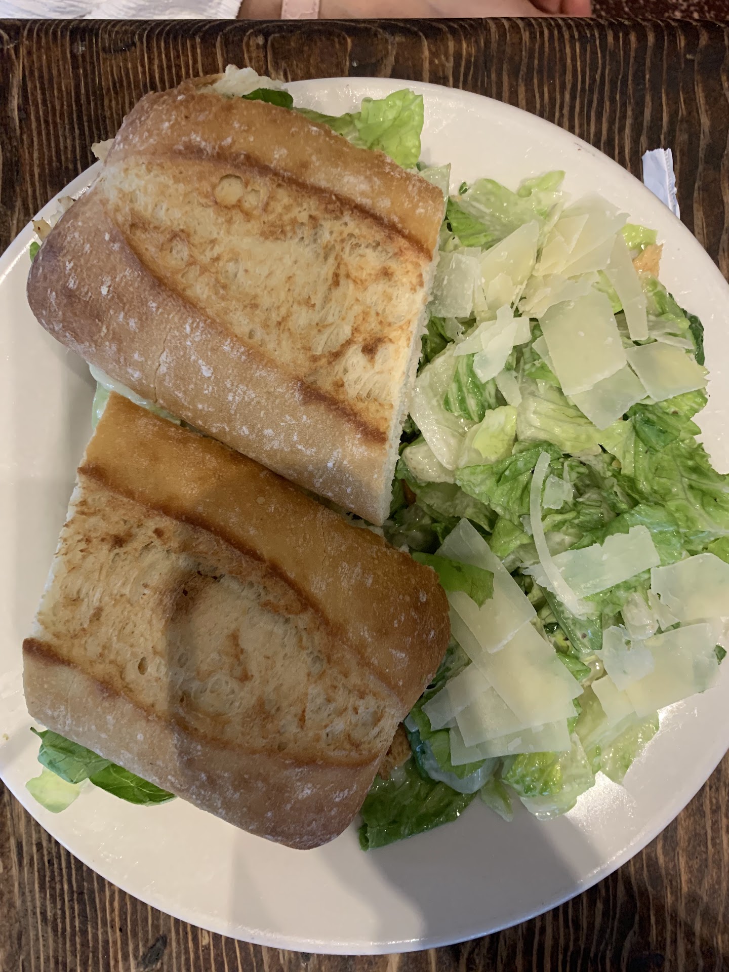 I have always been a big fan of La Madeleine, but my visit to this location was disappointing. Clean store, everyone greets you as you enter but it went down hill from there. I brought 2 guests for a lunch splurge. Myself and one of my guests each ordered a small caesar salad with chicken. The cashier showed us with her hands how small the salads would be...(circling her fingers to show slightly smaller than a side salad plate)... My guest and I both agreed that small was what we wanted (we were familiar with these salads from other locations in the past). My other guest ordered the chicken caesar sandwich and a blueberry muffin. We immediately got the muffin and water cups. Food came fairly quickly, sandwich looked great and salads were ENORMOUS. Guest raved about the sandwich, he said it's pricey but LOVED IT, it was my treat. âșïž. The salads were quite dry, both from lack of dressing and from dried out chicken. We each only ate 1/2 the salad as we only wanted small to begin with and took the remainder home. We were never checked on, at out table. Had to get our own carryout containers and after all my raving about the fresh bread and wonderful jams, we never even got any. đ„ș. Oh and the reason why our salads were so enormous? She went ahead and charged me for large ones even after we both confirmed wanting small. So now my one guest left thinking about how he couldn't afford to come back on his own because 2 small salads and a sandwich (we only drank water) was over $32. That's a pricey lunch.(The muffin also turned out very average, no fresh baked items here). At least the sandwich was good, cuz everything else was bland, dry and NOT fresh. I highly recommend La Madeleine in general, but not this...