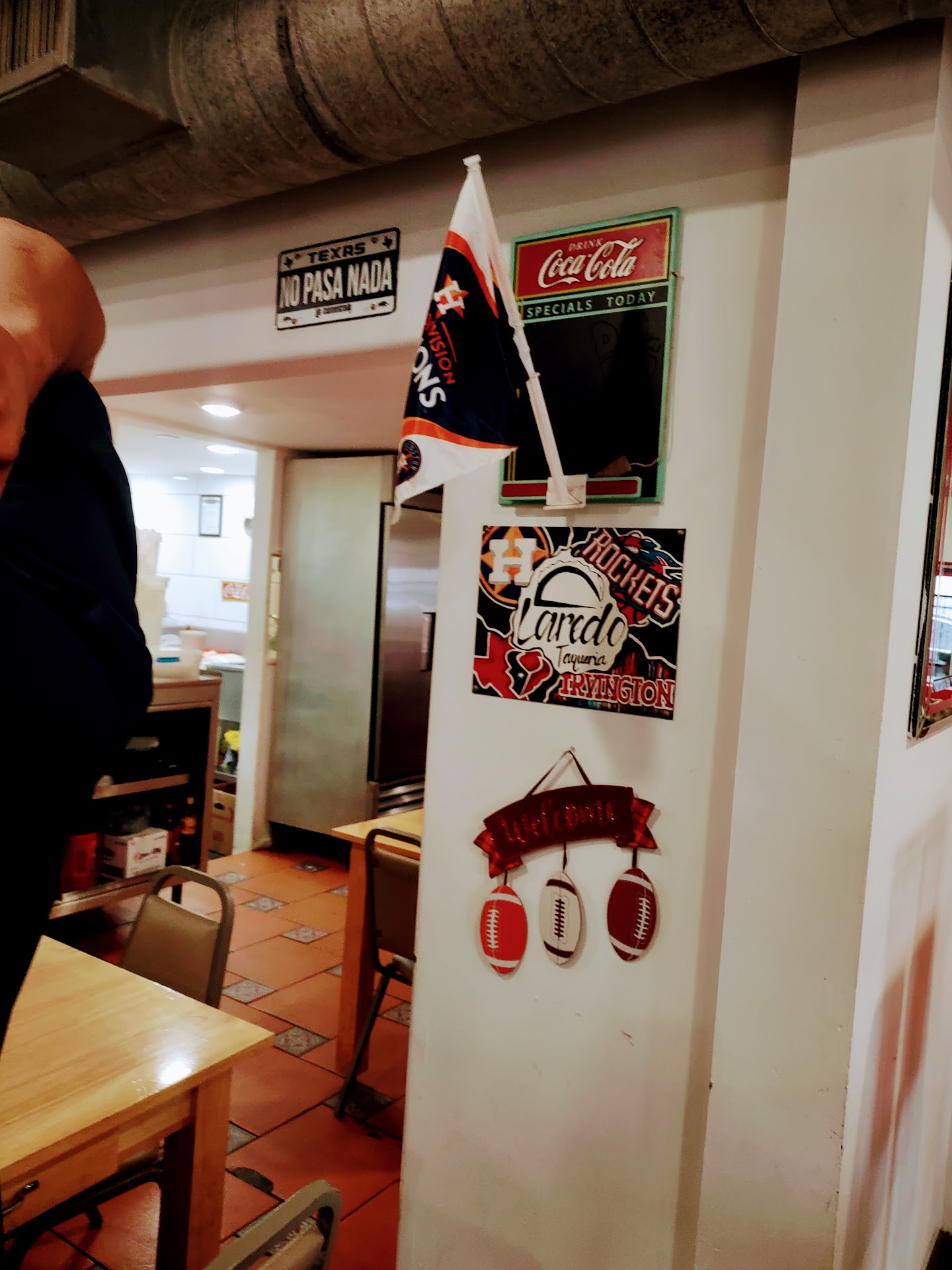 Read moreA proud tiny Houston establishment. The decor is Houston sports teams. The tables are simple and two waitresses hustle between them taking orders and serving. No menu with a mini buffet setting as you enter. (Spoke with the owner and said that his entrée foods change every week). This is a restaurant where you can get tacos with what they offer on the now. I asked what the had and she started rattling off, "fajitas, eggs with bacon, carnitas..." I stopped her there. I ordered 2 tacos of carnitas with everything on corn tortillas but they are made fresh and had run out by noon on a Sat. (to be expected as the place was packed). I settled for flour tortillas and my waitress said that the tacos were big. She wasn't lying. I ordered a large "Agua de Jamaica". Best carnitas I've found so far. Total price $10 and I was stuffed and satisfied. Will definitely bring my gf back here. Super economical for...