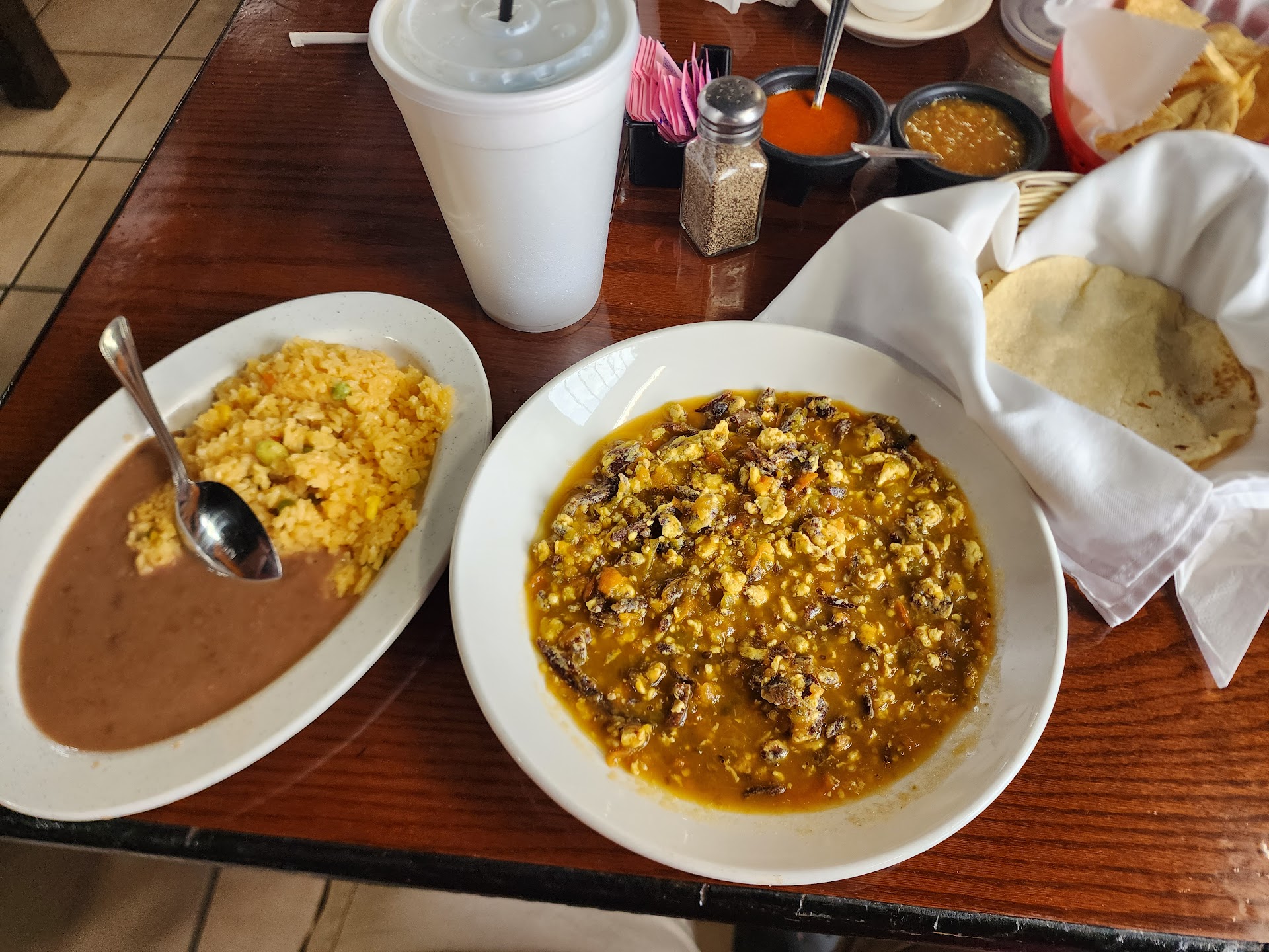I live in Kemah and rarely ever get to make it my hometown of Pasadena. I'm running an estate sale a block away from Las Morenitas and thought I'd check it out for lunch... it is almost impossible to find a Mexican restaurant that serves anything resembling fideo soup in Kemah so I ordered the child's plate of alphabet soup. It had a side of cheese and I used my fiances avacado and lime to top it. It was so good and such a large serving for a childs plate I was stuffed... My fiance ordered the grilled seasoned chicken with rice and beans and he said it was delicious. I noticed a dish on the menu that I had never heard of before called Aporreado. It is manchaca (dried beef) mixed with eggs and topped with a very soupy 'special' chile sauce... I promised Maria I would come back for breakfast the next day to try out some breakfast tacos but.... I didn't make it. Shane stopped at Shipleys (not my favorite kolache shop) instead. Today Shane and ordered the Aporreado dish and it was to die for.. we loved it. And tomorrow we will definitely be stopping by for breakfast... The owner Maria was very sweet and the place is very clean with a great atmosphere....