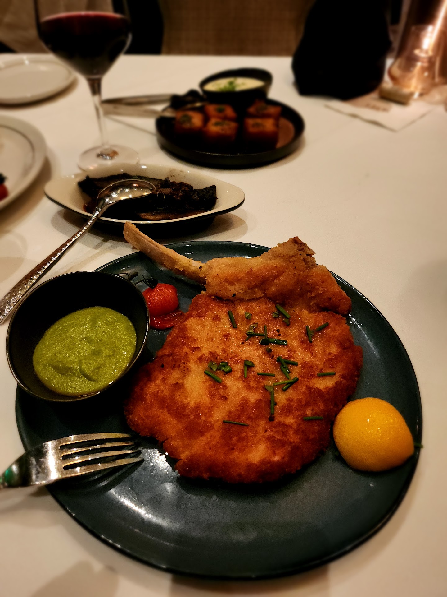 While the food was good, everything else unfortunately was not what one would expect from a fine dining venue. While the restaurant was slightly dimly lit and lacking any bustling atmosphere, it was both the service and lack of customer service on behalf of management that I had the most issue with. It is not normal to ask for a simple bottle of still water three times before having it delivered to our table. It is not normal to order a bottle of Sancerre and after asking about its whereabouts more than 30 minutes later, we kept being told that the staff was trying to "locate the bottle". As for the Entree, we ordered a simple medium cooked Porterhouse dish and had to wait well over 35 minutes to get it, only after the waitress flagged a manager to have him look into it. The worst part was the manager finally brought the main dish over without even the slightest apology for the delay. Not to mention that half the dish was undercooked, and we had to send it back. At the time of dessert, as the waitress distributed the menu, she offered the table a dessert on the house - what she did not specify was that it had to be a dessert of their choosing that was actually not even on the menu (a pecan pie). I opted out of the complimentary dessert and chose 3 elaborate and appealing desserts on the menu. After waiting over 25 minutes for the desserts to finally show up, we were missing one. Waitress whispered to me that it was "unavailable" (not even sure what that meant). By that point, I just wanted to pay the bill and leave.