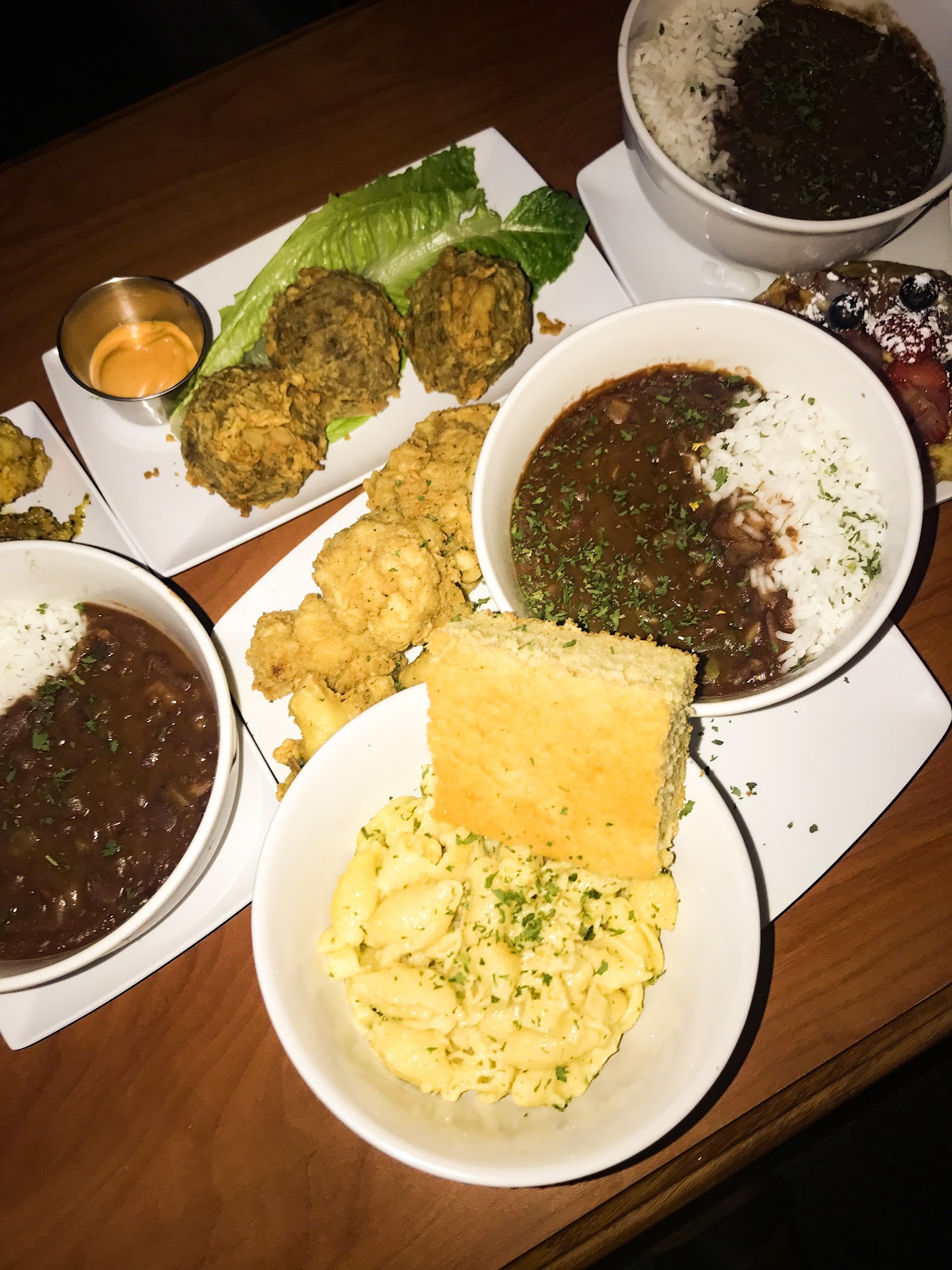 15 minutes later ANOTHER server comes up and asks what our order was so we told her. She then says they are sold out of the boudain balls we ordered so we got the cauliflower wings instead. (both of our patience is really being tested at this point)