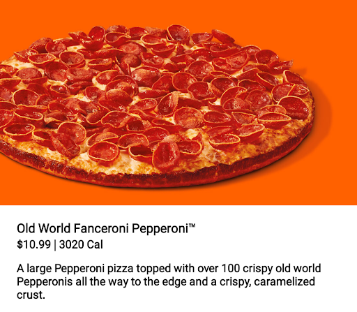 • You have no choice but to get a refund and leave empty handed and shaking with adrenaline from a heated argument with two clearly inebriated and unstable employees that apparently exist in a reality separate from your own where the sky is somehow green, the grass is somehow blue, and a Classic Pepperoni cooked on a coupe/screen pan with a Classic Pepperoni's amount of old world pepperoni is somehow an 'Old World Fanceroni Pepperoni™' pizza cooked in a deep dish pan.