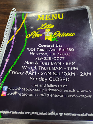 Little New Orleans, located in the Binz Building at 1001 Texas Ave, but on the Main Street side, between Texas Ave. and Prairie St., happens to be a Cajun Restaurant, serving up a great variety of Po'Boys and Cajun Entrees. Being my first time there, I needed to sit down and look over their large menu. While I was reviewing their menu, the restaurant was quite busy with various delivery drivers waiting on their orders. Evidently, there was confusion as to, who's order is who's. On top of that, there seemed to be an issue on people receiving wrong orders as they were making the delivery drivers check their customers orders. This should have raised Red Flags to me. So I approached the counter and began to place my order. I decided on: 1 x Pepper Jack Boudin Eggrolls (3 pc) $5.99 1 x Bourbon Street Pasta ~ consisting of Chicken, Shrimp, Sausage, Crawfish, and Penne Pasta, served with Garlic Bread. $13.99 1 x Smothered Cabbage $3.99 1 x Peach Cobbler $5.99 2 x 16 oz Bottles of Soda (2 X $2.50 ea.) $5.00 Now then, I did have trouble listening to the cashier repeating my order. Again, all the noise from the confusion on those delivery orders. Their payment system is that, you pay after you order. It's one of those systems that also asked up front for a tip. I went ahead and applied a 20% tip. I did have to ask for a receipt. I was then asked if I wanted my Sodas now or with my order. I decided to take them now because, I wasn't sure how long it would take to prepare my order. While I was waiting, there was some confusion as to my order. I was asked what appetizer I had ordered. I told them, the Pepper Jack Boudin Eggrolls. The gentleman behind the counter said that, that is what he had heard me tell the cashier. Finally, my food arrived, but I was told that they were still preparing my appetizer. Now then, the Bourbon Street Pasta, the sauce was delicious and creamy. The Shrimp was tough, the Chicken and Sausage were dry and the Crawfish, chewy. As for my side item, the Smothered Cabbage, when I was ordering it, I asked; what's it smothered with? All my years living in Louisiana, smothered always meant covered in some type of Gravy. Here though, I was told that it was Seasonings cooked down till the Cabbage browns. Basically, boiled seasoned Cabbage, cooked down to the point of reducing the water, leaving just some juice. Overall, not bad, as far as boiled Cabbage goes. As I finished my Cabbage, my Pepper Jack Boudin Eggrolls arrived. Upon opening the container, I noticed that it came with a sauce. The sauce turned out to be the same sauce as what was mixed in my pasta dish. After I bit into the Eggroll, I noticed something pink, as well as it tasting off. I decided to peel the Wanton Wrapper off, only to realize that they still messed up my order on the appetizer. Instead of the Pepper Jack Boudin Eggroll, I received the Crawfish Boudin Eggrolls. Not what I ordered, and nor did I care for it. I had my mouth set for that Pepper Jack Cheese mixed in the Boudin. I was very disappointed. As for the Peach Cobbler, that at least was good. Basic, but good. As a Cajun Restaurant, it's nothing special. As for service, I couldn't even provide a single star. Between messing up my order, those delivery drivers orders and the cashier not paying any attention to her ordering. Not to mention, her being more focused on getting off and what she planned on doing, and what game was on, etc. I can understand why everything was in total chaos. Atmosphere? Really... Tight, Cramp, and Crazy. As for the restrooms, you have to go out the back door and into the Binz Building lobby to use their restroom. Final Note: my order (subtotal) was $38.96. As I thought about it, I was wondering why my grand total was $50.60? Two reasons... 1) That appetizer I ordered, the Pepper Jack Boudin Eggroll for $5.99, I was actually charged for the Hot Chitto Boudin Ball for $9.99. and 2) the 20% tip , instead of being added to the Subtotal of $38.96, it was added against the grand total (with Tax) of $42.17. So needless to say, I was overcharged...