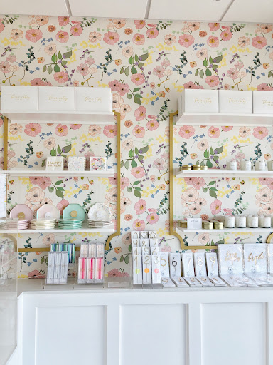 The new space is absolutely gorgeous. Her custom wallpaper is stunning and it's such a bright and cheerful space. All her baked goods are beautiful and she also sells candles, party plates, napkins, and fun cake toppers. If you're heading to a party or need to grab something for a special day, it's kind of a one stop shop for your dessert needs.