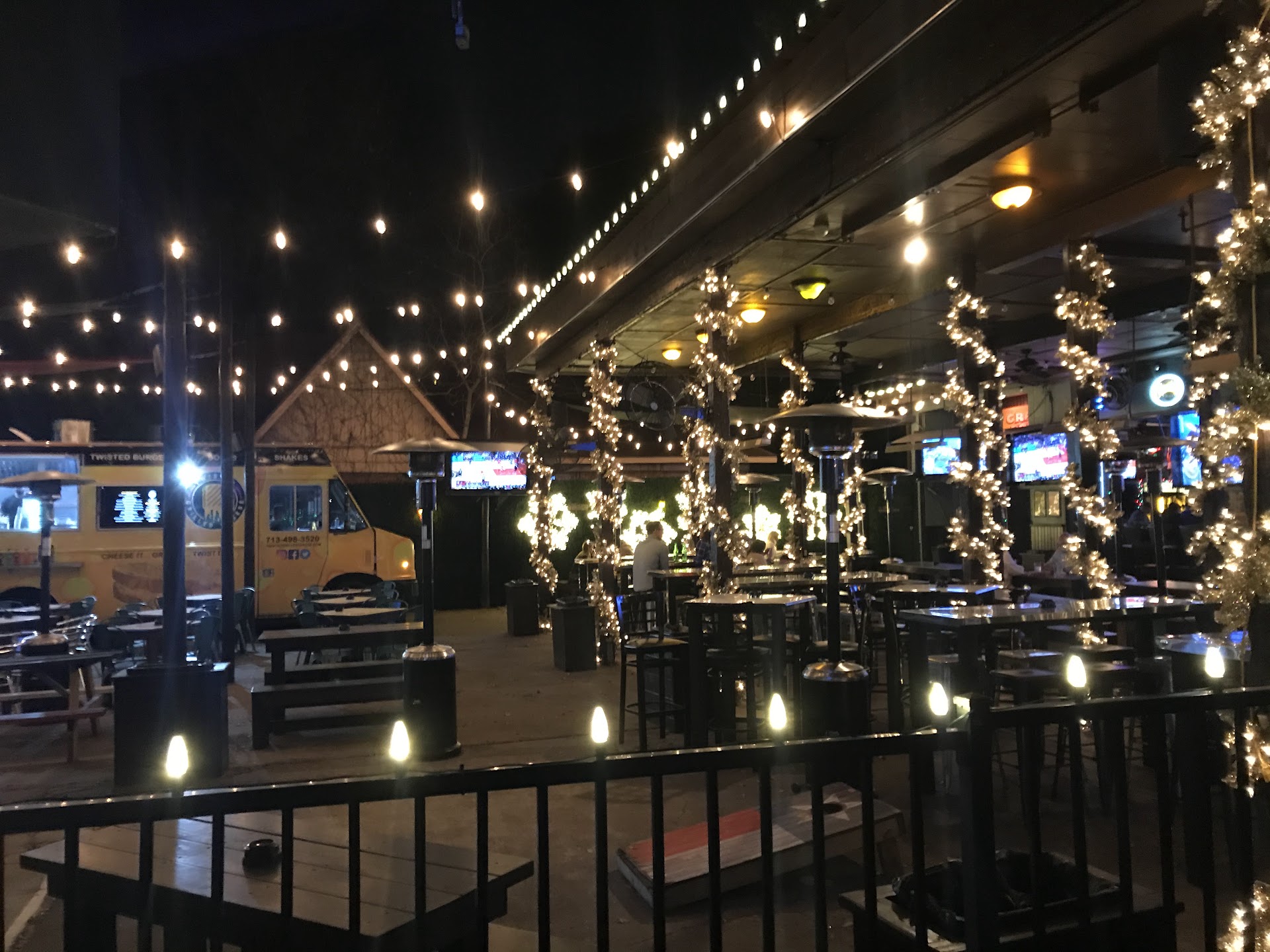 Read moreGreat view of customers and outdoor porch (so many huge screen TV sets) from the bus stop. I could watch soccer game the best. Need to fix the speaker by the street because they were jammin' some Led Zeppelin and it wasn't really loud enough. The fans they have outdoors spray some mist, and it was a scorcher the day I was at the bus stop exposed to the hot, Texas sun, and, consequently when I was on the fence looking into their outdoor courtyard, it made for a nice respite area. Beautiful atmosphere. Looked like a great hangout to watch sports and invite your friends or club. There was a beautiful motorcycle parked near the porch that may have belonged to a patron or an employee. I didn't get the impression this was a biker bar, per se. The great thing about this place is the bus stop being out front, if you've had one too many, well, I guess you could maybe convince the bus driver to help you get home safely. I don't drink but I know it's not a good idea to try to drink and drive. Drink responsibly...this is the place to do it and chill on a...
