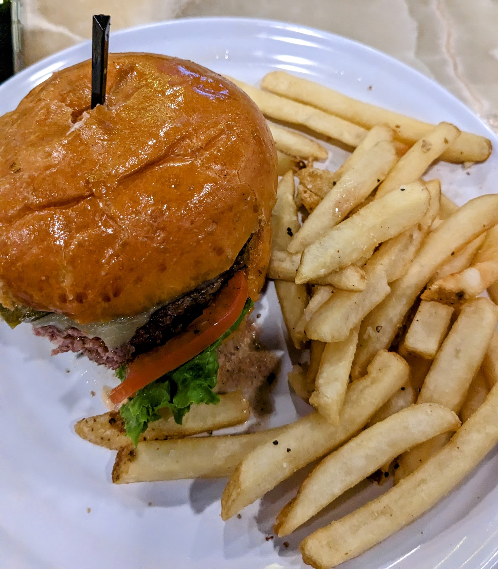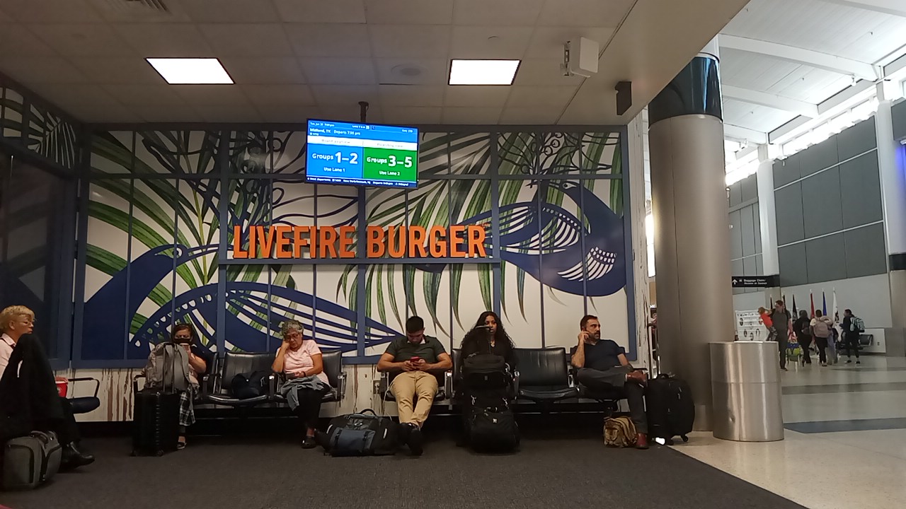 I stopped in for a burger. My flight was boarding in thirty minutes and I asked if I had time. I was told yes, I should order it to go. So I said okay.