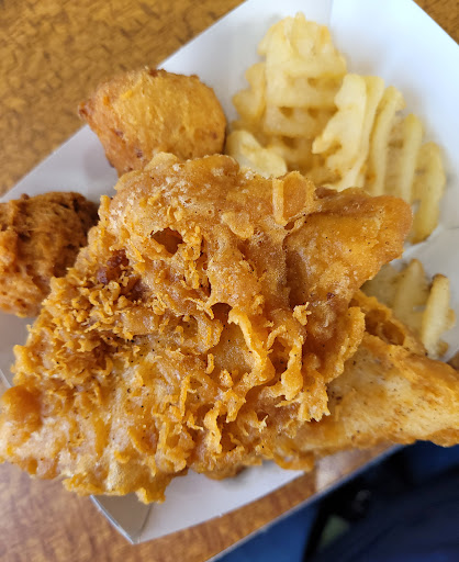 Read moreFood was delicious. Service was friendly but that was about it. I was handed an empty cup so I assumed I get my own drink from the soda fountain. Well... The soda fountain nor the ice machine was working. They saw me struggling, trying to fill my cup up and nobody cared. They knew it was off and didn't even bother helping me. I needed something to drink so I poured what little was left in the unsweetened tea pot. No sugar available and since the ice machine was not working I was stuck with warm unsweetened tea. I didn't complaint because they saw what I was going through and didn't care. At this point I just wanted to eat and leave asap.Food came out fast and it came out hot, however, it was served on a food tray that seemed to have been used all day and never cleaned. Grease and old crumbs evident from prior use. Gives me reason to believe that they just pick up the empty trays from the trashcan area and send them back out. All, and I mean all of the tables were dirty so I just picked one that didn't seem so greasy. Condiment bottles were greasy and full of fingerprints. Again, nobody cared to wipe these off. All of this is tragic given the great tasting meal I had. Fish was flaky and the fries were cooked perfectly. The chicken was juicy and just as tasty. If they could just take initiative and keep the place clean and be more attentive to the needs of guests, this place would be fantastic. I understand that these folks are probably underpaid but to whomever is managing this establishment, do your job and train your staff better. I can only imagine the conditions of the kitchen and restrooms. To anyone reading this review, take your food to go or just take your business elsewhere. DO...