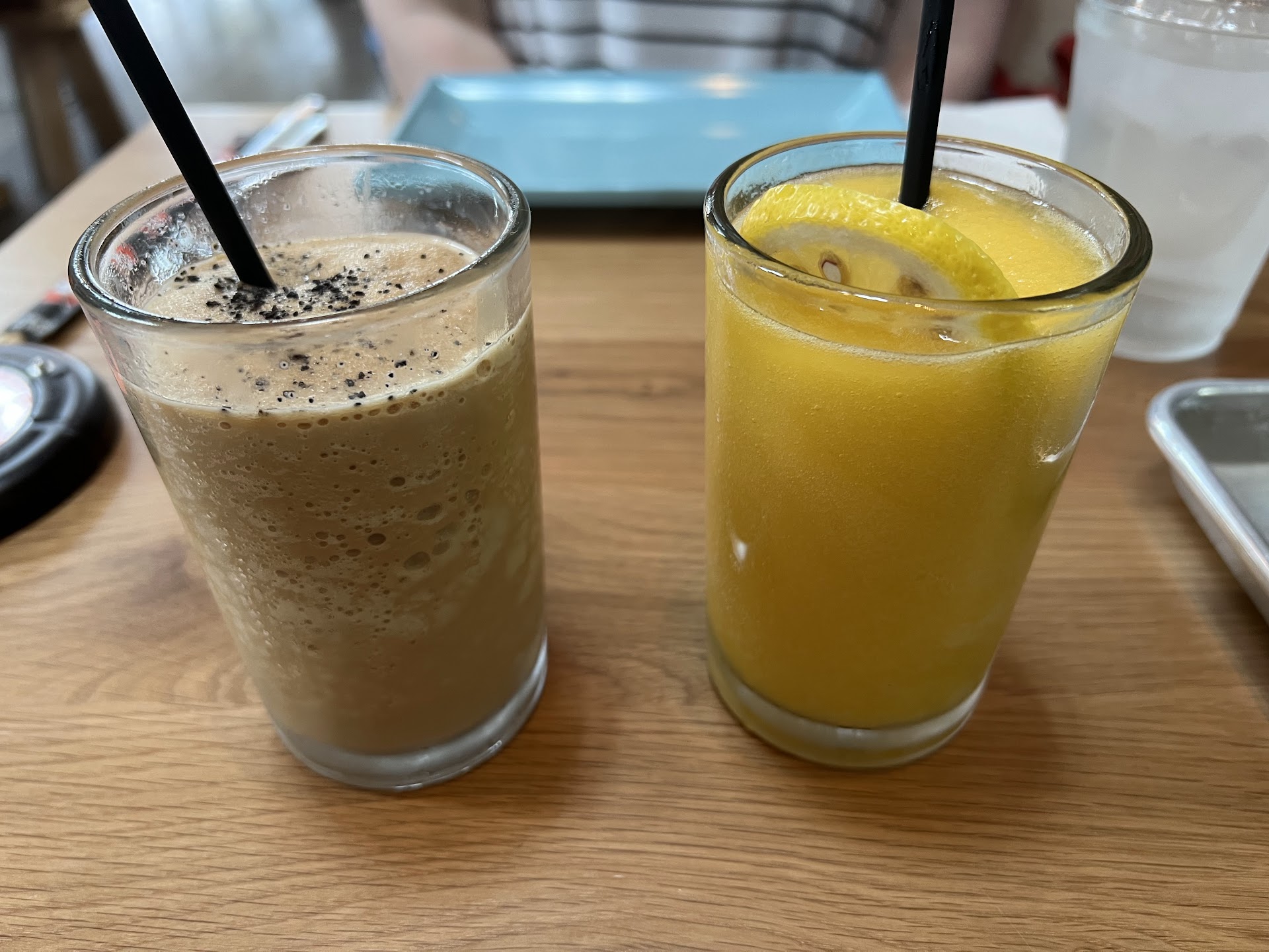 So, I stood up, and my wife came with me, and we left our cups on the table to mark our territory, empty cocktails and still full water cups. Except, while we were both spending another 10-15 minutes in line again, one of the staff cleared our drinks from the table. And then, while we were STILL waiting to place our order, another server, seeing a now-empty table, came and seated another group there.