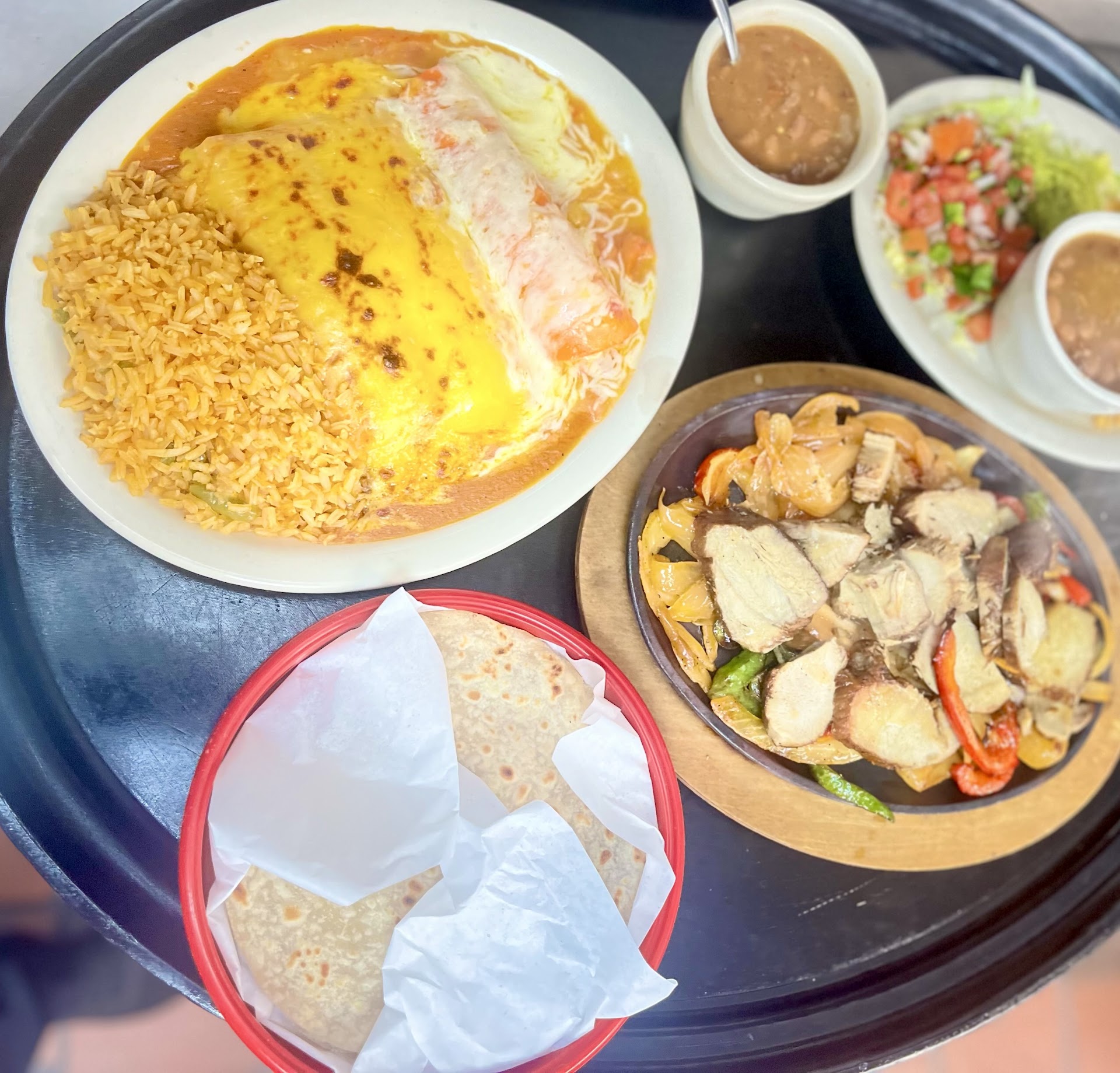 I ordered the flautas and they had promise but when I bit into them, they were so dry and bland. My sister had the burrito the ground beef and said they tasted a little bit like fish, which is really strange when she ordered ground beef. Mind you she hates fish so thereās that.