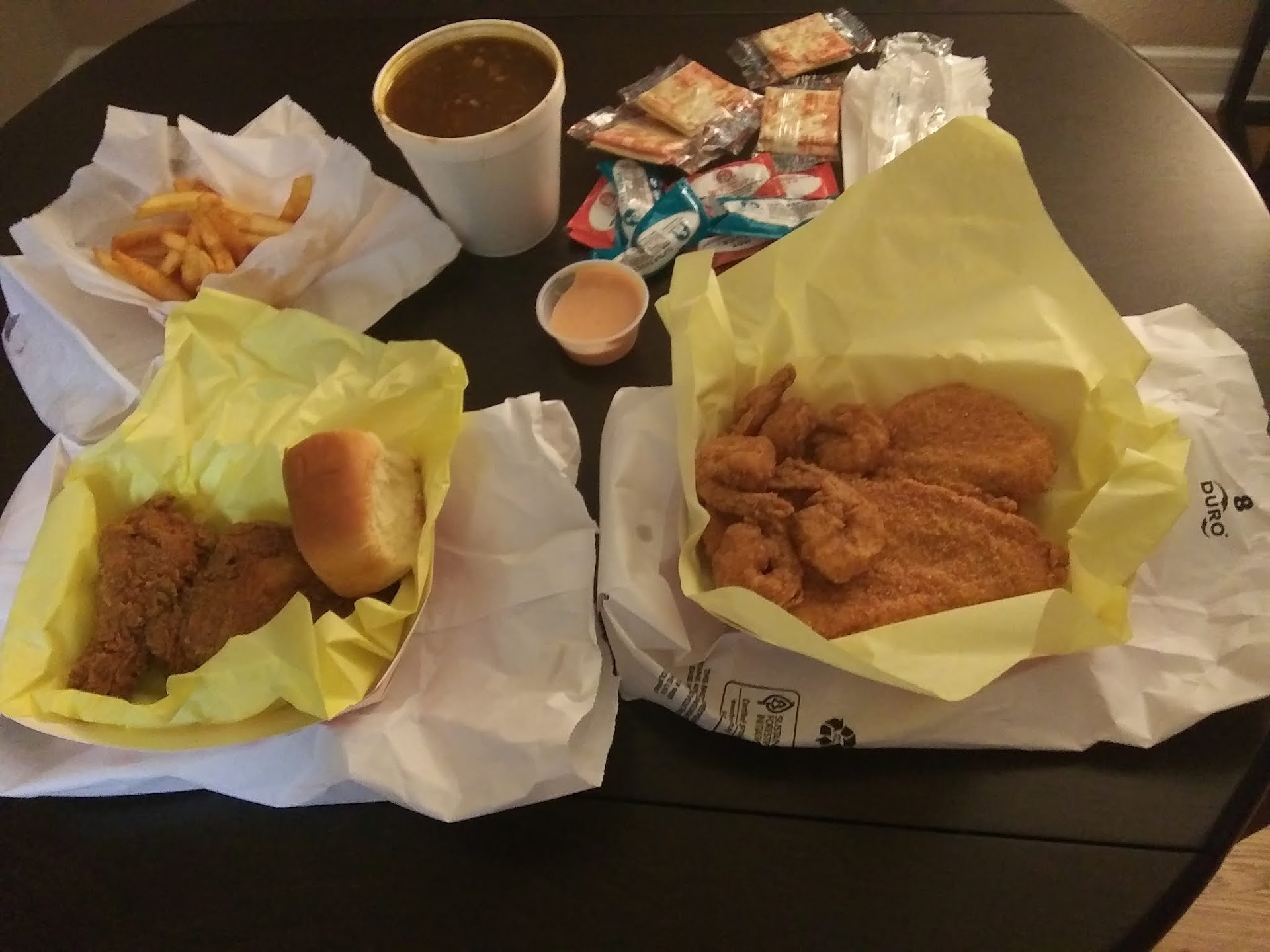 Read moreIt's New Year's Day and there's nothing else open and I'm driving after a long day of showing houses and decided I would give this place a chance (again, not really out of choice but necessity).. I am absolutely shocked at how how good the food was. It would probably be 4.5 out of five and I'm rounding up. I got the shrimp and catfish and the fish did not taste fishy!! (That's what's usually wrong with catfish in Houston.) The shrimp was plump and a flavorful (I wish there was at least one more piece). I got dirty rice as a side and it was very, very decent. The only reason I wouldn't get it again is because I would want to try some of the other things like shrimp fried rice and the mashed potatoes that the lady recommended. I'm not sure if all the branches are like this, but I will definitely try it up at some point...