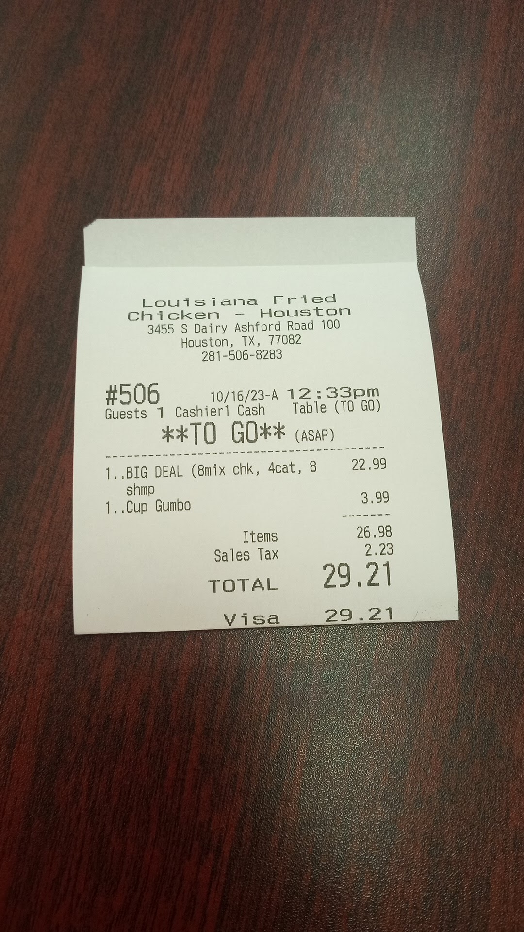 I pay the $19.48 including tax for the 8pc family combo and get my change and in walks an UberEATS driver.