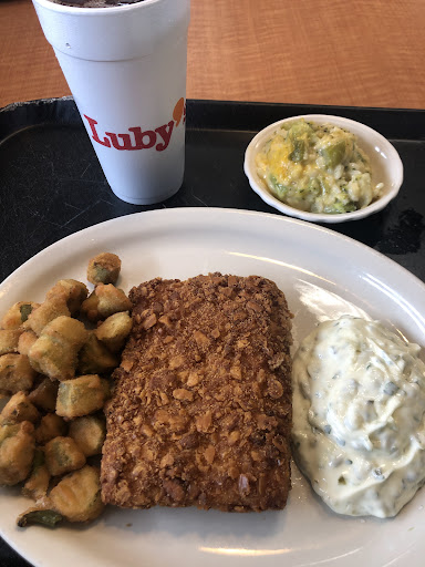 Read moreLuby's has always been my favorite place to go for as long as I can remember. Their fried fish, liver and onions and bake chicken "was" the best. Over the years the taste and hotness of the food has most definitely gone up as has the prices. I use to eat at this location for years at least 2 or 3 times a week before COVID and slowly noticed how their prices were creeping up but yet the quality of the food was declining. I still patronize it the food was just a hit or miss sometimes. Fast forward since they have reopened after COVID. I understand a lot of restaurants are charging a to go fee but they are also changing 25 cents per container for cranberry sauce and pick de gallo in addition to the plate prices being higher. Luby's you can't charge higher and additional prices if your food don't taste anywhere close to what it use to taste like. You might as well go to Texas Roadhouse, Saltgrass or Chili's to get a reasonably priced plate around $10 to $14. Let's not talk about the outrageous prices for the desserts now. I went today and ordered a combo plate along with a few containers of pico de gallo. I got home to eat and after a two bites realized the pico de gallo was spoiled thank heavens I was able to scrape it off my food so I could finish eating. The liver and onions wasnt fresh, the so called cornbread dressing today was absolutely horrible. It was bready and tasted nothing like it usually taste like. It's most definitely time for ya'll to close down ya'll have had a good run but Luby is...