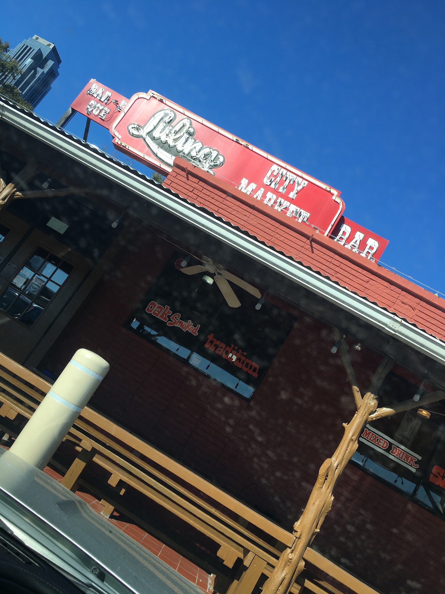 Read moreI ordered to-go ribs and sausage 30 minutes prior to closing time. Atmosphere inside the restaurant seemed subdued because not many diners were eating at 6:30 PM, I guess. Typical BBQ joint where diners order while standing in queue. SOME but not all serve staff doling food onto plates either don't speak English or they were apathetic to answer questions, and the prices are well above average yet the quality did not justify the price. Please be aware that the BBQ sauce contains mustard just like a South Carolina mustard-based BBQ sauce except that Luling's sauce is spicier. I like it; however if you don't like mustard then bring your own sauce. The only sides are potato salad, slaw and pinto beans; no corn, greens or other vegetables. Also the sausage meat is bland with minimal seasoning yet it's smoked thoroughly to flavor; would be nice to have well seasoned sausage to accompany great smoked flavor. No cheese inside the sausage (thank heavens). I also didn't see beer on the menu board, but the soft drinks are fountain style plus there is a small cooler behind the cashier with Big Red and Fanta grape and orange. There was a separate alcohol bar within the place so you may have to pay for alcohol separately. This meal was okay but didn't make my mouth water. It cost $50 for one person without dessert, which is a lot higher than I have been paying for decent BBQ in other places around the southeast...