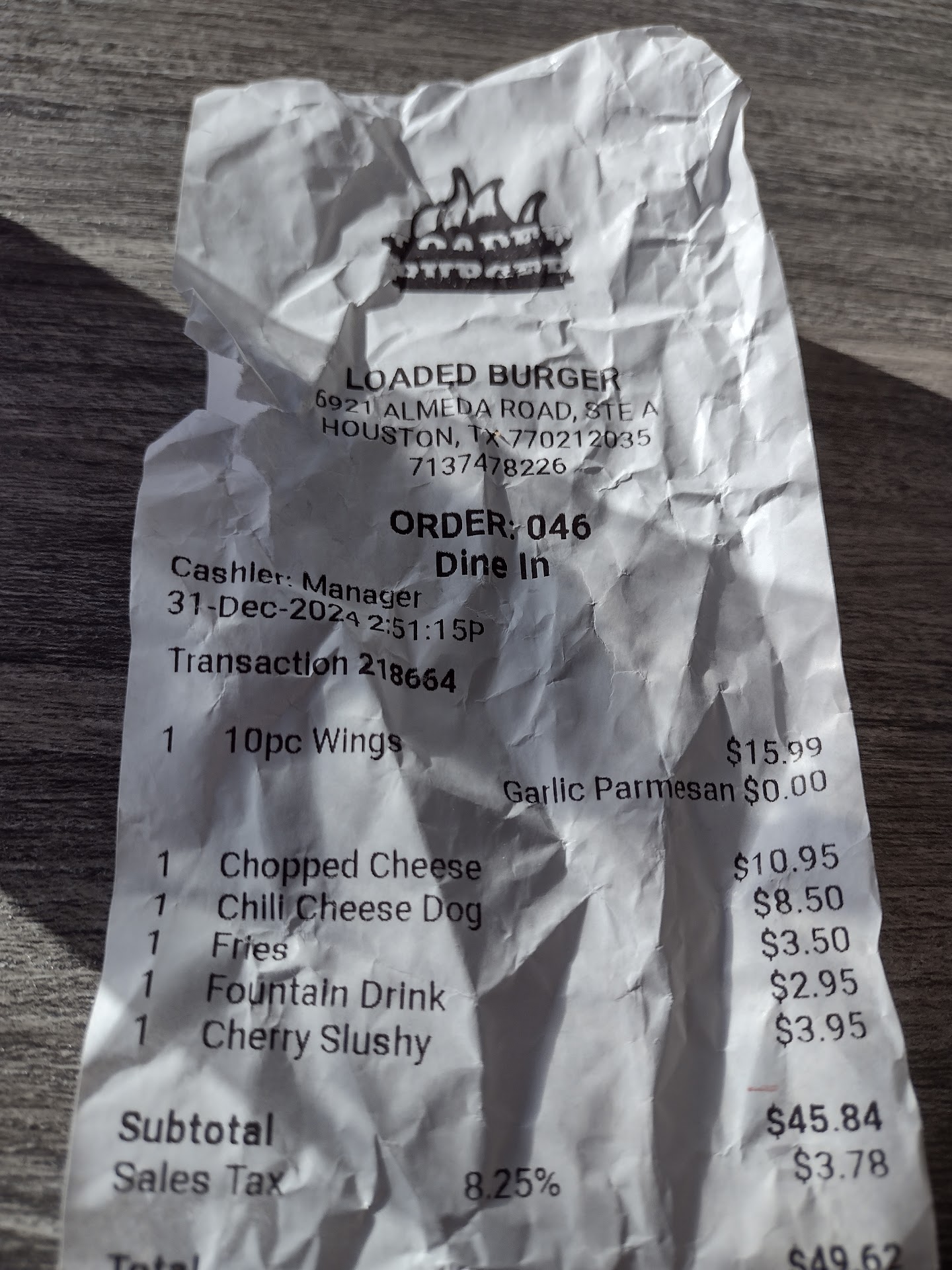 Read moreMy family does not eat pork, so we chose this spot because it is halal. We were a little disappointed that the menu we viewed online was very different than the offerings at the restaurant. We were hoping to get enchiladas, falafel, and shawarma, but once we arrived, we were told that they discontinued everything except burgers and hotdogs. Since we had driven about 30 miles to eat here, we decided to try some things off the menu so it wouldn't be a wasted trip. We ordered the chili cheese hot dog, chopped cheese, 10 garlic parmesan chicken wings, and an order of fries. The food portions were decent for the price. The chili was seasoned well. The chopped cheese was good; it is a hoagie with sauteed ground beef, which was not overly seasoned. The fries were crinkle cut, with the right amount of crisp on the outside and fluffiness on the inside. They even had koolaid slushes. The only negative aspect of the food we ordered, pertained to the chicken wings. We don't consume a lot of salt but it didn't seem as if the chicken had any salt or seasoning applied to it prior to it being cooked. The coating on the chicken was minimal (which we liked) and the wings were fried nice and golden, but they were very bland. Overall, the experience was good and we'll probably return if we're in the area again, but we wouldn't order the...