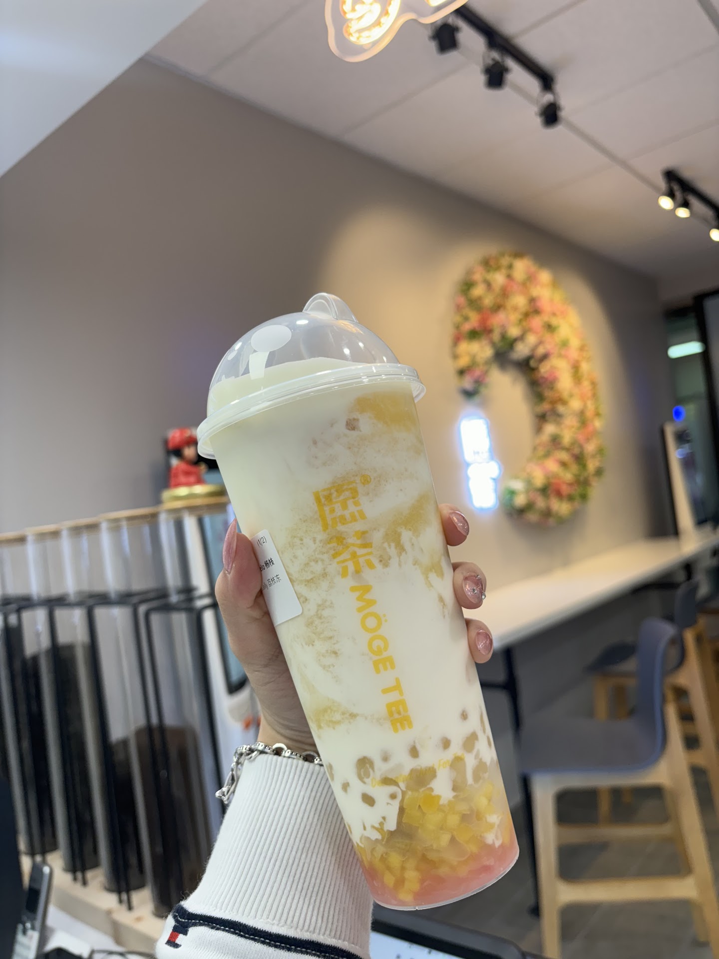 Read moreThis was my second visit to this location of Moge Tee, and both visits were great experiences! The staff and owners are very friendly. The drinks have fresh ingredients, and it is not too sweet without adjustments. The location is convenient because you can grab a refreshment after grocery shopping! The store is clean and quiet with aesthetic interior, and they offer free wifi so it's an efficient place to get work done. There are also screens to order from, for introverts! I recommend the cheese foam mango tea slush. Even though mangos aren't in season, it tasted fresh...