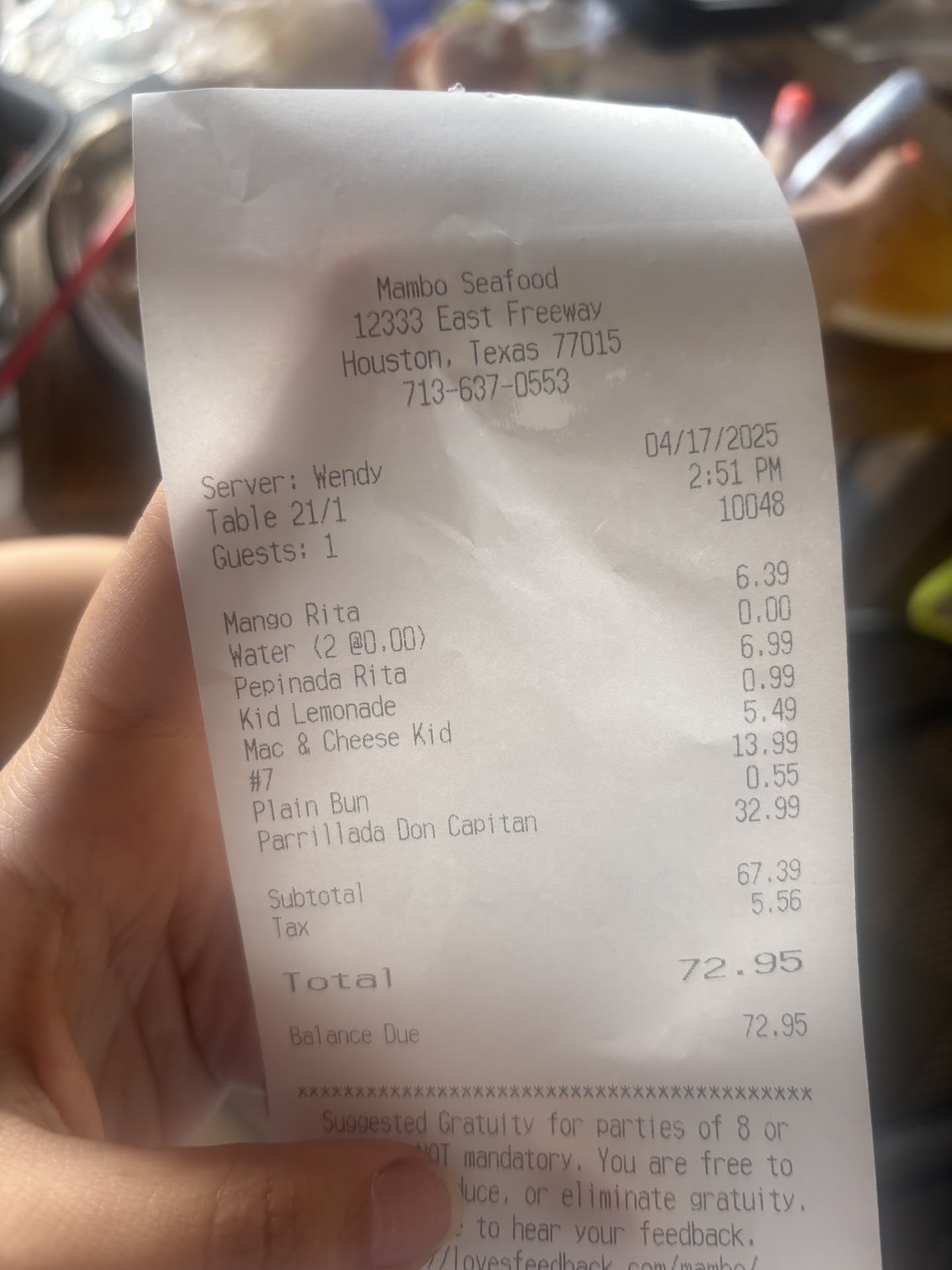 We don't recommend Mambo's Restaurant for all the above reasons and hope this detailed review helps someone else.