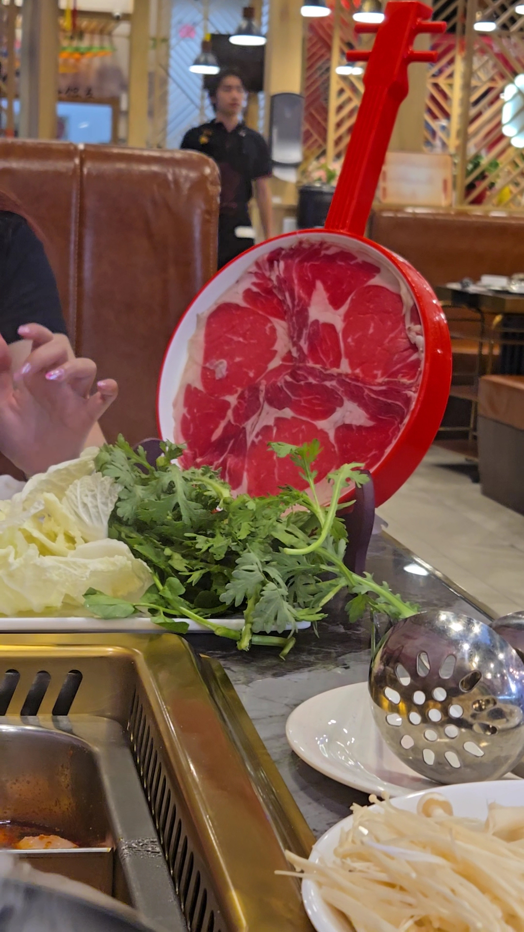Read moreRight off the bat, service was already lackluster. We had gotten seated by a server, not even greeted. As soon as we sat, the same server started asking us for our orders after we mentioned we had never been there. The experience was not that good to begin with and essentially set the tone overall for our dinner. We got to try 4 of the 5 broth options. All were super bland and did not meet any expectations of what they were supposed to taste like. The meat looked pretty however the taste did not match as the broth was so bland and the quality of the meat itself was not so great. As the sauce bar had mostly 2 of the same items, there was not much chance to save the broth with any seasoning aside from the little amount of fish sauce they provided. Not even salt was provided. This was the same for the 3 provided stations around the restaurant to help yourself to other items like noodles, vegetables, and fish balls. Variety was severely lacking here and there was not any of the common favorites for hot pot like quail eggs or let alone lettuce. The appetizers provided under the heat lamp were actually good. The desserts and help yourself drink stations were a good touch as well. Other than that, we more than likely will choose to not ever return and we will stick to the ones that are always good like Shabu Zone and Liuyishou. We asked everyone in our party what their honest thoughts were and this is a culmination of their feedback, most of us scoring the experience overall as a 5/10 and myself a 3/10 based on my experiences...