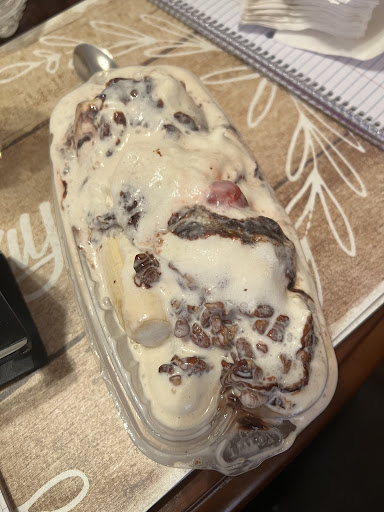 I come here pretty often and today there is something that really bothered me and I won’t be coming back here anymore after today, first off I posted a pic of my banana split and the guy rolled the container up in the bag and when I opened it, it looked like that, the ice cream was every where. My second complaint is that while I was there, I did not see any of the workers wearing gloves! My last complaint is that he got confused or something with one of the flavors I wanted and he got one of those little spoons to sample the ice cream and he took one sample and ate it and then used the exact same spoon he just ate off of and dug it into another container of ice cream to taste that one as well! Very disturbing to see the person helping me to put the same spoon that just went into his mouth into the ice cream where they take from to serve people ! First no gloves and then that! Not coming...