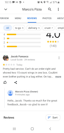 Read moreThis is a really good Marco’s Pizza location, however, I ordered carry out, and the pick up experience is an issue of sanitation and hygiene. While approaching the countertop to receive my order, an employee came out of what I am assuming is the bathroom with a mop and bucket in hand. As he was crossing with the mop and bucket, he as right on queue acknowledged me to get my order. He failed to wash his hands and proceeded to hand me the pizzas. To add insult to injury, the employee said “ here you go homeslice”. Your employee needs some retraining on customer service and sanitation best practices.
