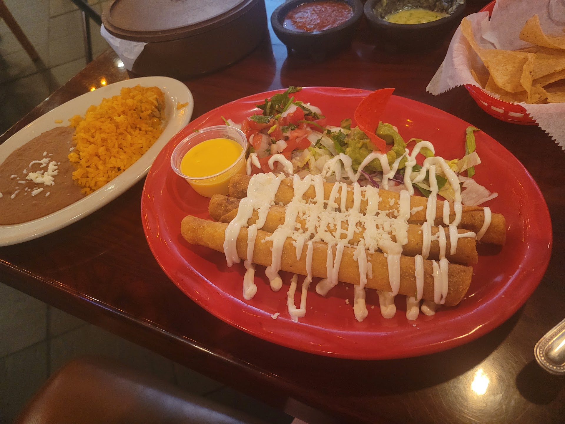 Read moreWhile in town for the Chevron Marathon, we were staying at the Double Tree Hilton at Hobby Airport and we were looking for a decent Mexican restaurant. A few were near that we've hit before so we wanted to try a new place and this popped up in our search only 5mins from the hotel. Pulling up into the front parking around 12:30pm, it did worry us there wasn't many cars there for a Sat lunch, but it's how we've found many other great places so we went in to give it a shot. Many have a staff shortage but we were very impressed of the Hostess there to show us sitting options since we were prob the only party there, but had a bar tender and a few waitresses. Our waitress come over and was super nice. Took our order while another person dropped chips and plenty of red and green salsas. So far all good, along with sweet tea that matched our critical thirst for true sweet tea and not something that requires multiple packs of sugar to get it right. We ordered enchiladas with a cheese sauce on top and Tacos AL Carbon. The enchiladas turned out really good but the AL Carbon fajita meat didn't taste so good and had a faint smell. It had plenty of meat and it's quite possible they just use a marinade different than my taste. We still recommend trying this place to get your own reviews since the place has great potential with very nice folks who work there and it was mostly all really good but our 1 visit will require another to see if the fajita meat improves to what...