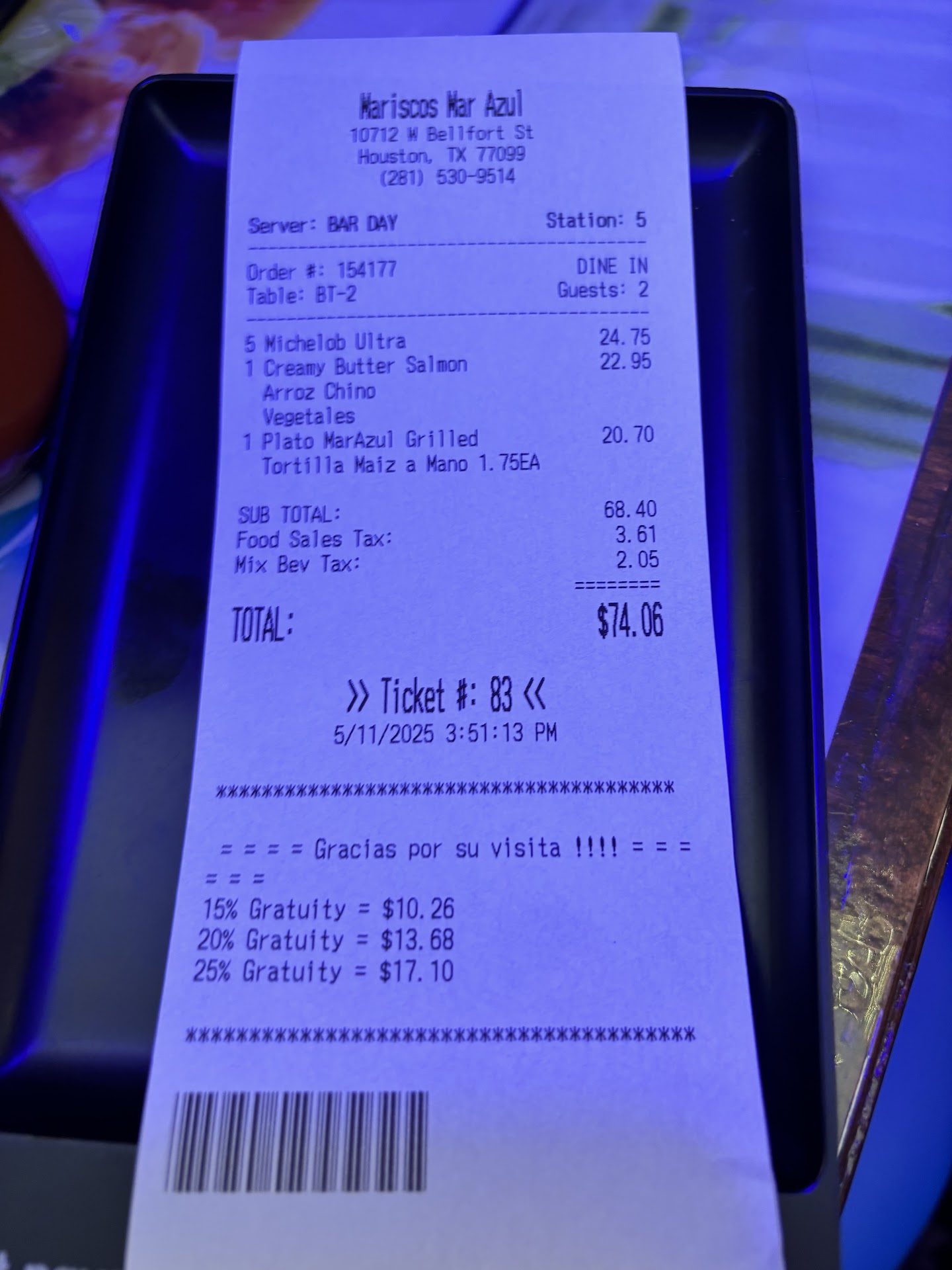 Read moreThe Food was Nasty the Shrimp they serve is the Frozen bag Shrimp. You can taste it right away, Everything is overpriced the Kids Meals are 6.99-7.99 anywhere else you'll pay 4-5 Dollars. If you Pay With a Debit card they will charge you 4% more.The service was horrible I ordered Kids Quesadillas with Rice&Beans for my Daughter when she bought the food, it came with "Chinese rice" I told the waitress that I wanted regular rice (Mexican Rice) her response was you should have told me how in the h* am I supposed to know what they serve it's my 1st time here and it does not say What type of rice it comes with any Hispanic Restaurant you go to they will serve you the Typical Mexican rice.The place is very little. The only good thing about this place is the couple Singing Live they can really sing! They also...