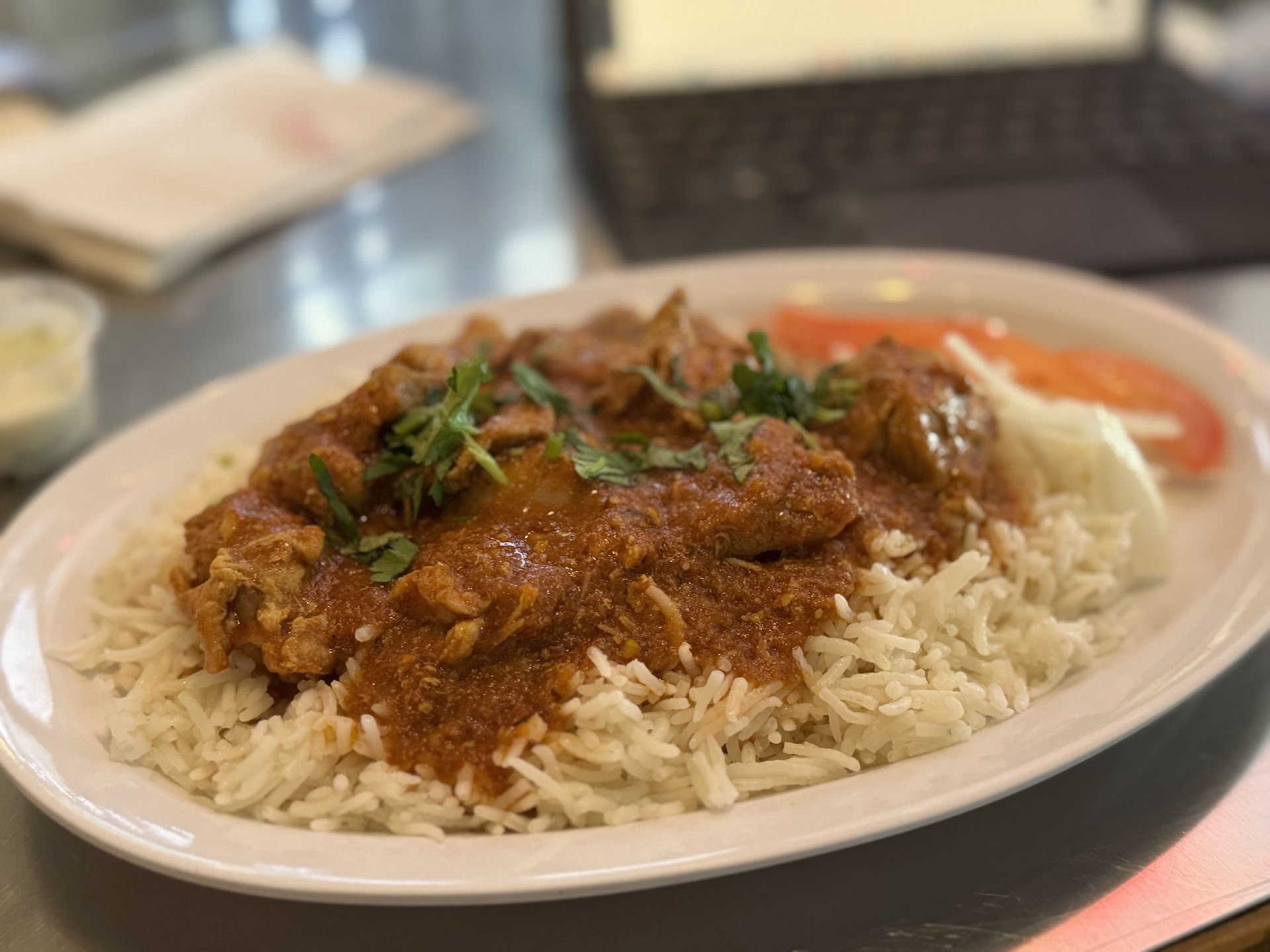 The food was OK. I added a generous amount of salt to improve the seasoning. I was warned that the curry might be spicy, however, the curry tasted washed out and bland. I was hoping for something a little bit more adventurous in flavor and textures. The naan was dried out and not particularly flavorful. Otherwise, the food was decent. If you’re looking for a curry, that is OK in flavor and yet can be improved with some salt, this is the place for you. The ambience was also OK. It was a large square room that became very noisy after only a few tables arrived. The process form ordering is, walk in the door and walk up to the cash and say what it is you want to eat. The worn out menus in front of the till are text only and not completely accurate. There are no photos or descriptions available to know what you’re going to get with your meal. The gentleman who took my order, was very pleasant and quite helpful. When I paid with my credit card, it prompted me for a tip. I am always confused at being asked for a tip for service that is not provided. What service am I tipping for exactly? Nevertheless, I did tip (15%) anticipating I would receive more service than I did. My plate of curry over rice arrived, with a small basket of naan, and raita on the side in a plastic dipping tray. The portion was a little on the small side and left me hungry at the end of the meal. Prior to eating, I needed to stand up and fetch my own cutlery and paper napkins. At the end of the meal, you’re expected to bus your own table and bring your plate over to the collection point. If you are looking for a delicious curry experience you might want to keep looking. If you are just hungry, this...