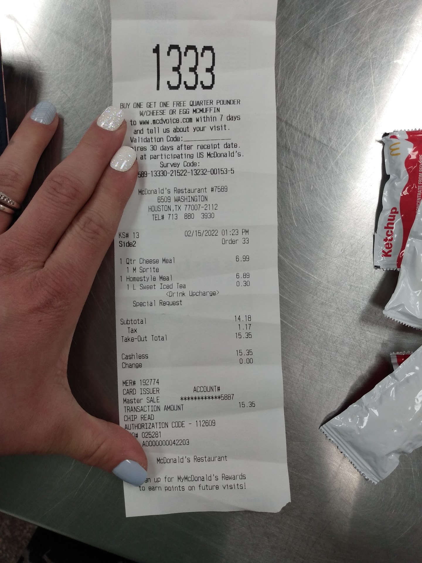 Ā Ā Ā Read moreI always come to this location, and I never have any problems with them when I use the mobile app. Service wise the staff gets confused. I went in and ordered two McChickens I asked for them to make it crispy because normally with the chickens if you order it, they donāt make it fresh. Itās usually something that sitting down that they re-fry and give it to you, but for some reason tonight the person in the drive-through did not understand what I was trying to say and charge me $2.49 extra for making it crispy. When I looked at the receipt they charged me for an extra chicken fillet which is not what I asked for. I tried to address the situation after receiving the receipt the lady completely ignored me and close the window in my face. I donāt want to give anyone a hard time and I donāt wanna have a hard time when Iām trying to take my hard earned money to go buy food. Just want the overnight crew to have a better knowledge of the system so they can provide the...