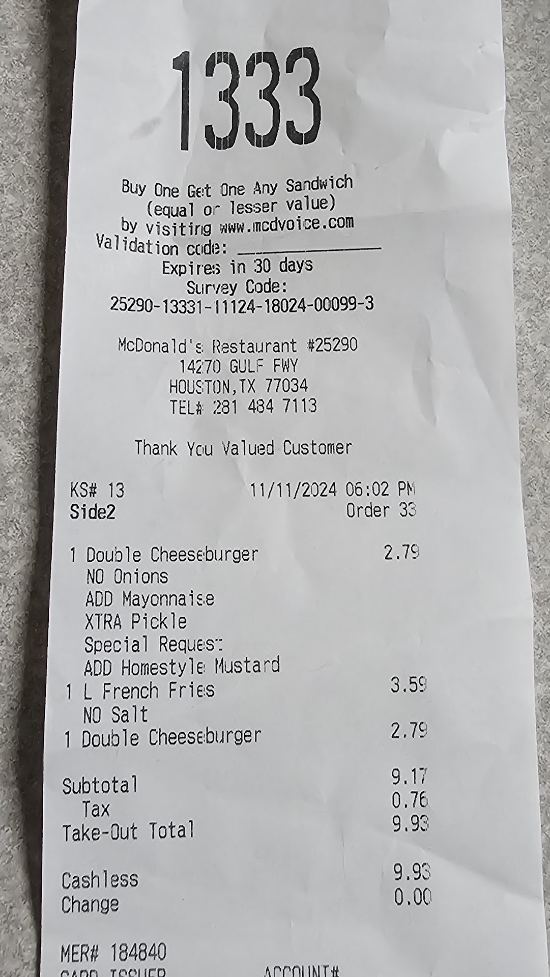 Read moreThe young man who was working the drive thru was on his phone apparently while I was trying to place my order. I know for a fact he was on it when we pulled up to pay. But while I was placing the order I kept having to repeat myself when I would ask a question. He was making my husband very frustrated because we were moving all weekend and all we wanted to do was stop in grab some food and go. However the whole ordering process took several minutes to complete because he would not answer my question and I kept having to repeat it multiple times. Then our order wasn't complete, we were missing items and by this time we were just frustrated and left instead of going in to complain. I can't believe the horrible experience we had dealing with this location. I will most likely not go back to this store, only because we should have gotten better customer service here. It's not that hard to answer my question about a deal they're running nor is it that hard to respond to me when I place my order,say that it's completed and wait...