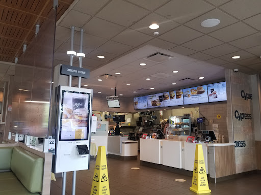 We know that this location has a LOT of drive-thru traffic and know that over the years the location was modified with dual lanes for taking more drive-thru orders. As such, I noticed this particular morning that almost everyone behind the counter was more focused and spending the vast majority of their time handling and delivering drive-thru orders. The person who took our order immediately went back to handle a drive-thru order - they did not deliver us our drinks. I noticed only 1 or 2 people paid any attention to the dine-in people at the register and if they did, they both went back to fulfilling drive-thru orders. In the past, we know that there was at least someone or more than one person who would focus on the dine-in patrons.