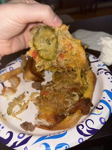 The food we got from here was so, so bad. I want to save someone else from having to throw away their meal like we did. We went inside this location and ordered our food to go. Service was eh. Not good but not bad. Restaurant seemed clean. We got fries, tator tots, a mega melt, and a southern fried chicken melt. The fries and tator tots were both incredibly soft (in a bad way) and flavorless. I tried putting them in the air fryer and adding salt but that couldn’t save them. Horrible. The chicken melt had an okay taste but had soggy, hot lettuce and random vegetables on it. They put the vegetables on the sandwich and then put it in the panini press or on the griddle or however they cook it. I’m not sure if that’s how the sandwich is supposed to come, but it’s awful. The texture of hot, gooey lettuce is never something I enjoy, personally. The mega melt was so bland I had to laugh. Terrible food. You’d have to actually try to make something so tasteless. I’m impressed. The photo is of the chicken melt. I did eat some. But we threw everything else away....