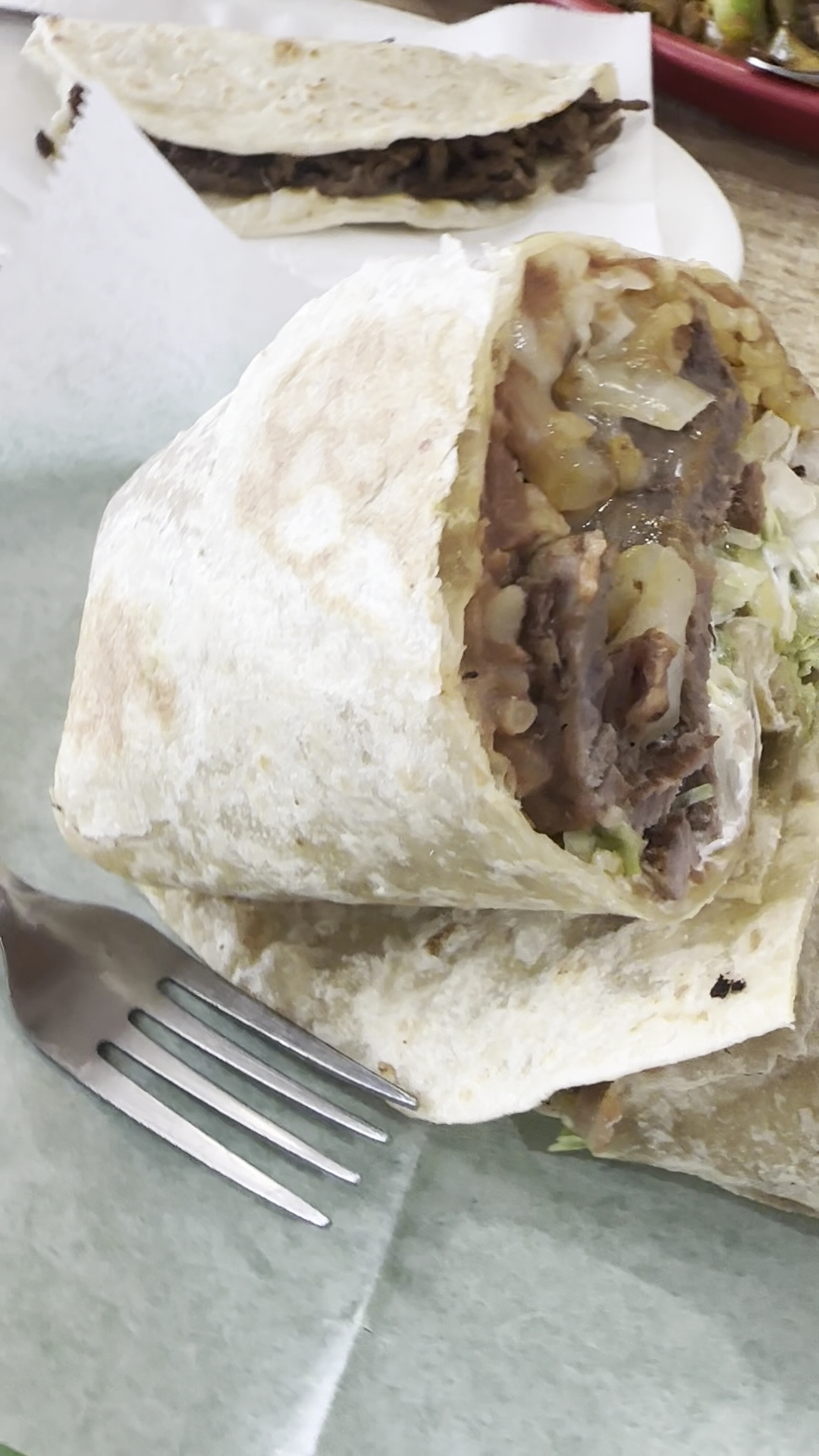 In the burrito, it had huge chucks of meat that couldn’t even be chewed.