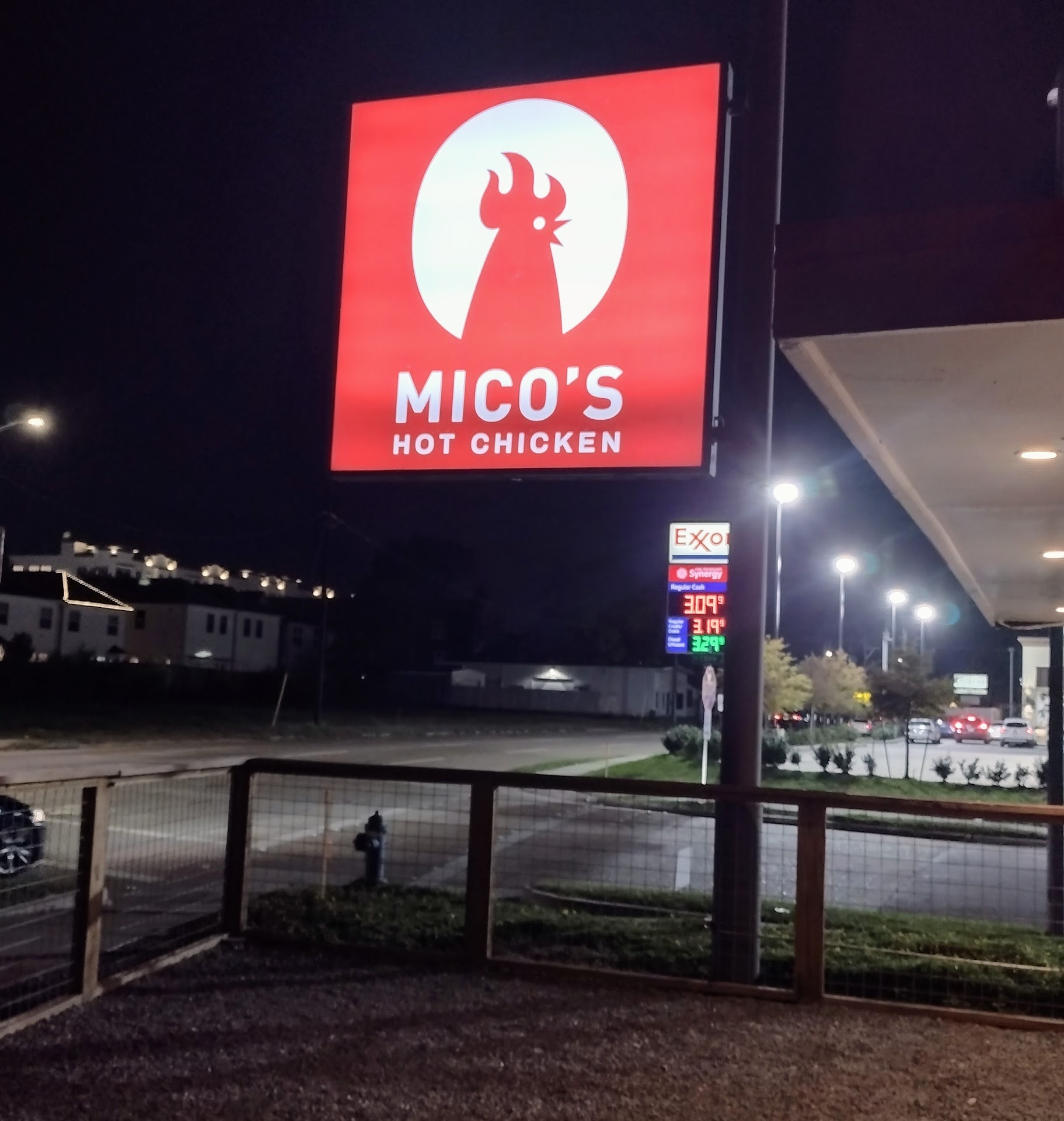 Read moreVery trendy chicken sandwich and chicken finger establishment located about a mile north of I-10 and just off Durham. This place definitely give a close race to Canes (located about a mile away) for the title of Best Chicken in the Heights. Both offer large fried tenders that are juicy and very sumptuous. Mico's distinguishes itself with it's unique hot sauce that greets you with the heat and let's it leisurely linger on your palate while a small dose of sweetness mingles to keep things in balance and not allow the heat to overpower you.