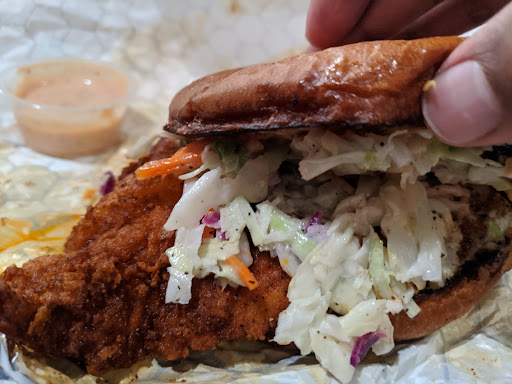 The chicken sandwich is one of the classic American fast food entrees. The rise of Chick-fil-A in the past decade illustrates it's growing market presence. The recent "chicken sandwich" wars starting with Popeye's foray into the field and reports McDonald's plan on re-entering also suggest the same. It is thus only reasonable in such an exciting time when new sandwiches abound that delicious food seekers yearn for a non-franchised unique chicken sandwich. Enter Mico's chicken sandwich. It's not that the "hot chicken sammich" is something that is new. The southeast US enjoys many different variants of the same. But...it is new to try a spin of it in a new location. Mico's is currently a food truck with plans to move to a brick and mortar location next door. There are not many food choices: the "sammich", the animal fries, and the tenders basket. They honestly don't need anything more. The sandwich comes in your choice of 5 different of heat levels ranging from none to extra hot. I ordered the hot! It comes packed in a foil wrapper and I ate it around 30 minutes after delivery. Two deliciously buttery toasted buns envelope perhaps the largest deep red-black, golden crisp crusted chicken breast I have ever seen on a sandwich. The crust was extremely craggy and the spice level was perfect but with the balance of flavors getting the medium would not be denying yourself the complete experience. The spice and flavor of the breast is balanced and combined with the cool crunch slaw and cold pickles is mind-blowing. The Mico's sauce which is a mayonnaise base with spices ensures a flavorful coating to accompany every bite without being lathered on such that it is constantly dripping out. The fries are tasty and a waffle style and the ones I bought were not animal. I would have gotten animal style to share if I ate this with someone else considering the gargantuan size of the sandwich. I purchased this meal close to end of day and may have played a role here but the oil the fries were fried in could perhaps have been fresher. The Mico's sauce while tasty and balances the sandwich out is innately not anything special. I did not purchase the chicken tenders but will leave that for another meal. But nonetheless I feel safe to make this claim: Chick-fil-A may have the market and Popeye's may have the news but Mico's has my heart as it is definitively THE. BEST. CHICKEN. SANDWICH....