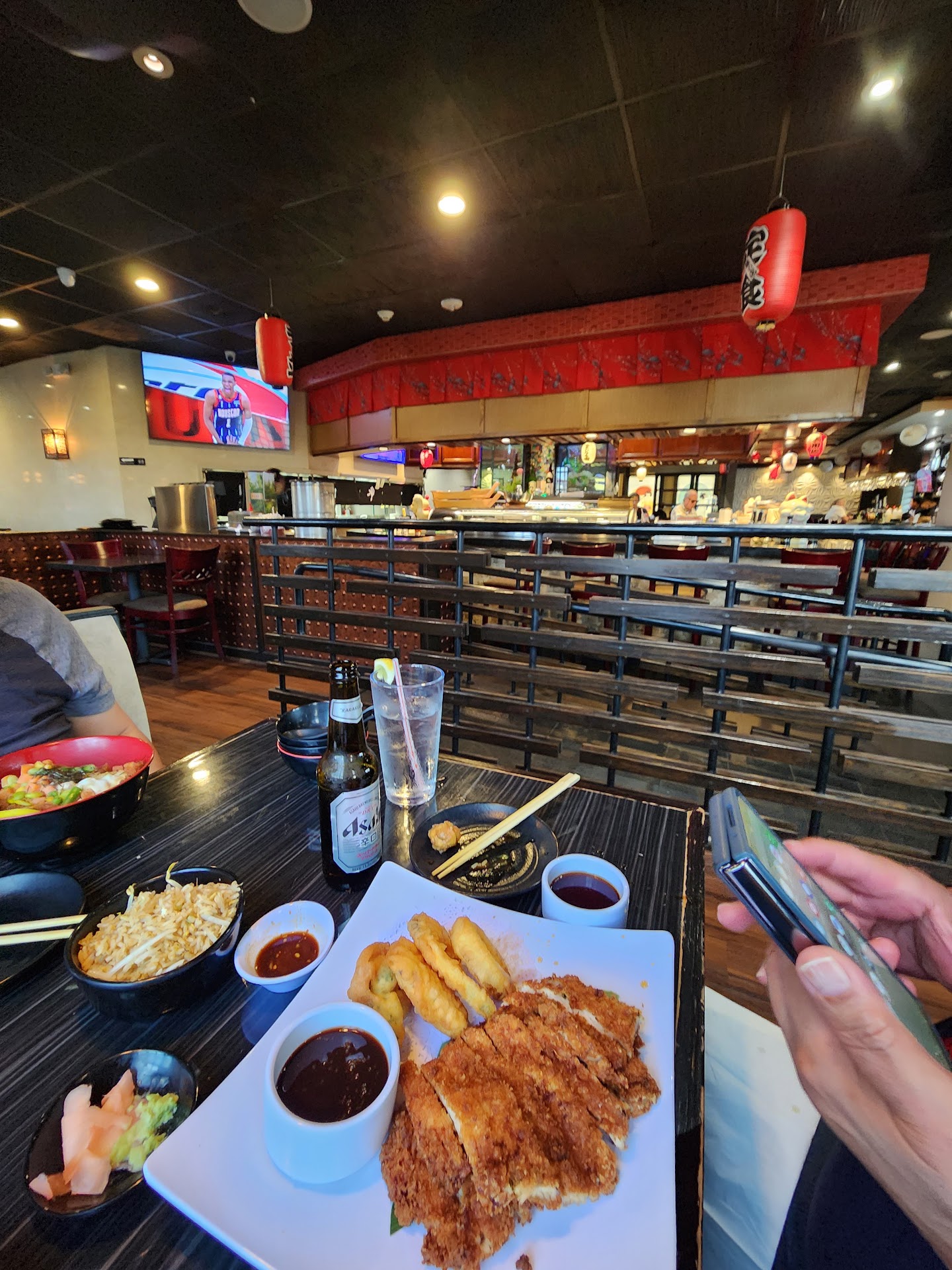 Read moreSo let's see. There was no wait to sit but parking was a nightmare on Friday Night. The place looked clean and full. They took us to a table right away. However the seat was dirty and sticky so had to call a staff to clean. Took a while for waitress to acknowledge us and take drink order. When asked what was the soup special she didn't know. Had to go ask. Came back and told us they were out. We started to order but it seem she was not familiar with the menu. Had to go ask someone in the kitchen to confirm. No worries. About 20 mins after placing order (she hadn't come by at all to check up), I had to get up and go find her for our status. Told me it was coming out. Another 7-8 mins and our main entree arrives. Still no sushi. I had to ask another server to grab our sushi. At this point the sushi was incorrect-missing the avocado. Sent it back to be redone and asked for forks. Took another 4-5 mins to get folks. At this point the semi warm entree is now cold. Took three attempts to get the manager to address the issue. Manager was sincere. Told us he would rush another one out and redo the order. Second time around it was much better. Manager came back to check and said he would take care of us. I appreciated that and got us a new waiter. Carmen, the new waitress, was on top of it all. We ended up ordering some desserts. The Godiva cake. Not bad. When the check came, clearly nothing "taken care of". I gave my card and said manager said he would take care of it. Got the charges back and he had taken the cheapest thing off. What a joke! Trust me won't be coming back. Quality of food wasn't there and the service overall was horrible. Left a 18% tip for Carmen and a note for the manager to check Yelp. I hope you have a better experience...