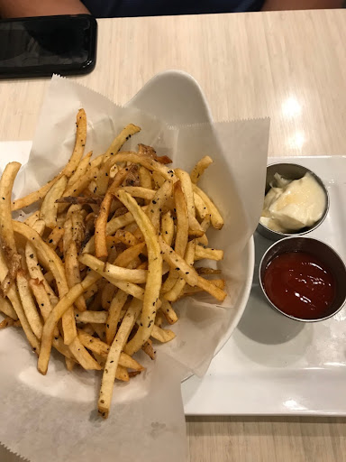 Now I want to say that we sat down on the long table first and then another party of 3 ask if the other side's taken and we welcome them to the table. They were actually being served by a manager (based on the clothing) and now we ordered our food and drink first, and the manager took their order a few minutes after. Yet somehow they were able to get their food and drink to them first. At least the salad that came with the steak came out in good time and it was decent mixed salad.