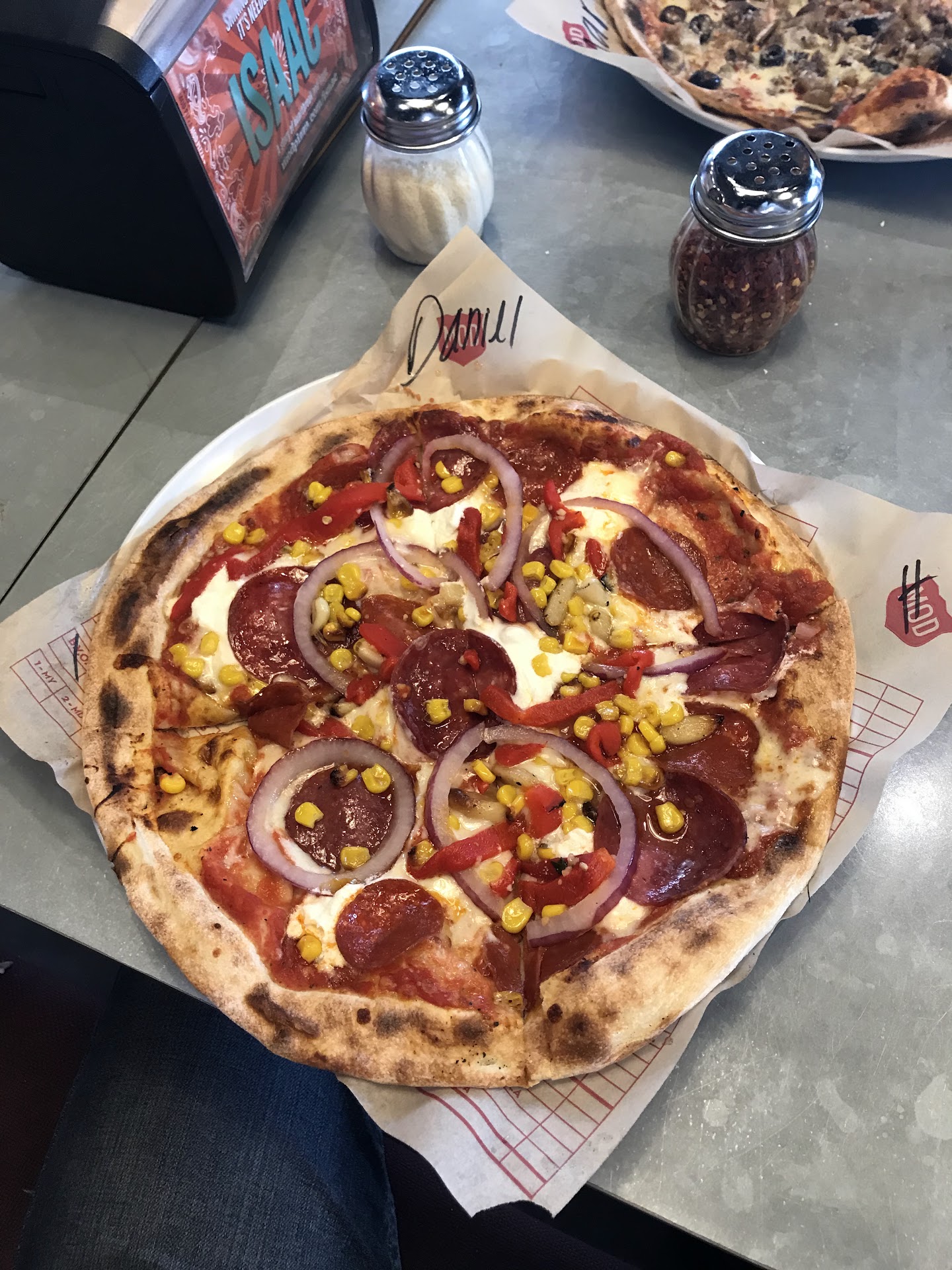 The pizza here is really good. Solid gourmet’ish options. The portions are fair. The price is right.