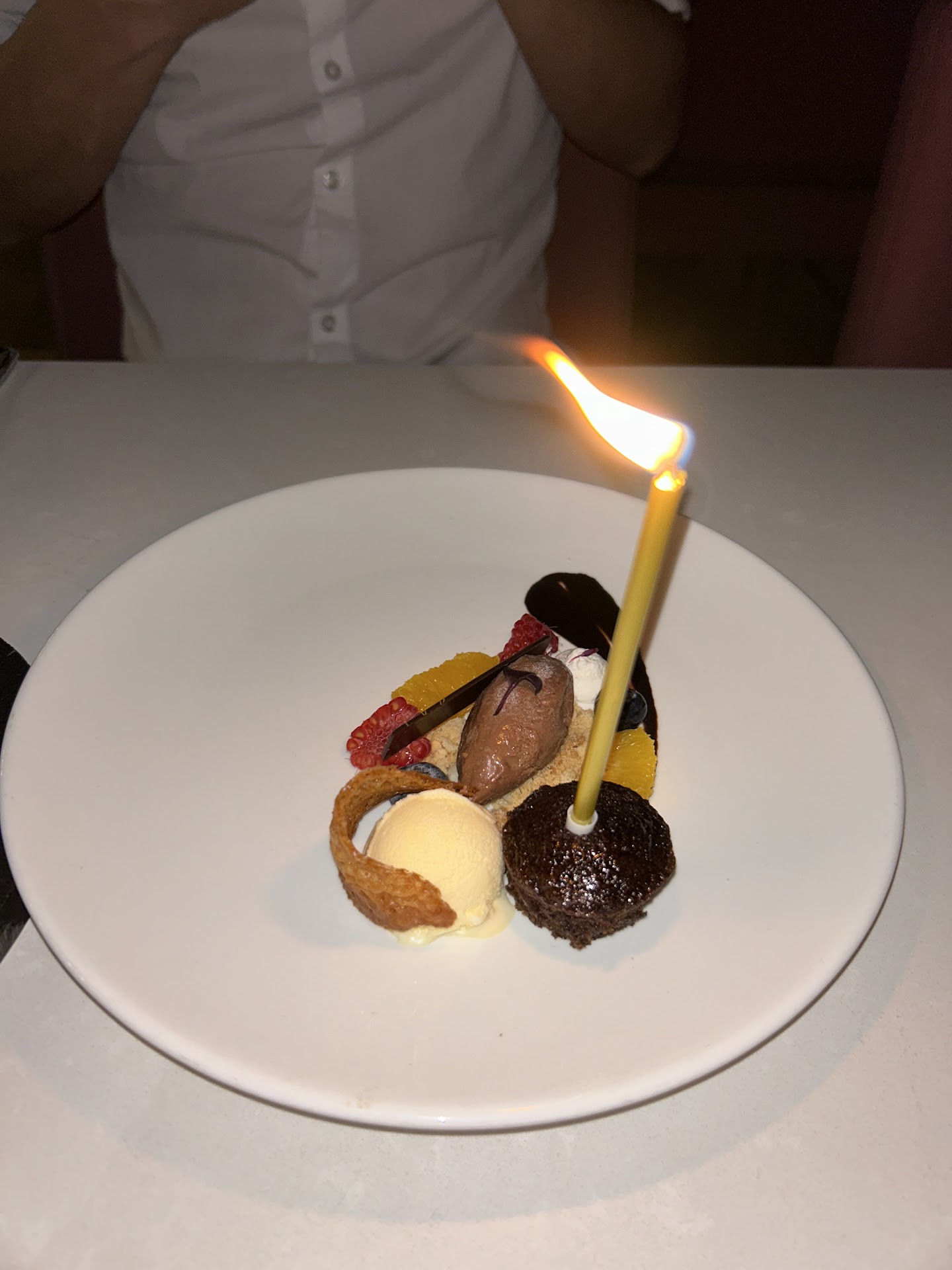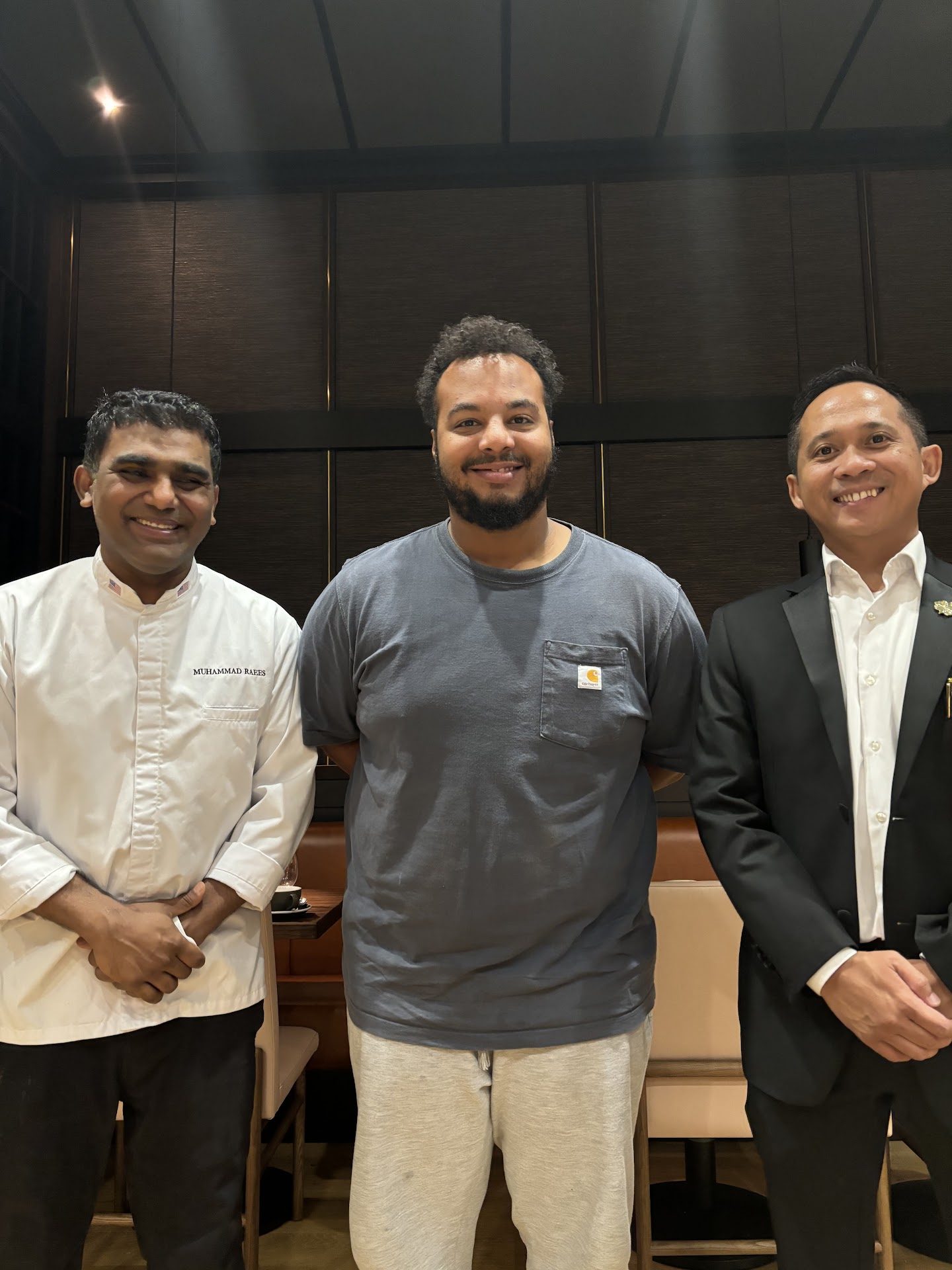 They are certainly still getting their feet under them regarding service. The staff were very friendly and welcoming and accommodating but the server lacked polish, (lots of um/uh and “mozdefinitely”) was unfamiliar with the menu, didn’t specify the pieces in the nagiri flight, etc. We had to ask bus boys for water refills every single time we needed it. Even watched the server fill the water of the table next to us and completely miss us. (Just a learning curve thing in service but could stand for some attention in a place charging these prices.) The food was OK. Not the best sushi in houston by miles. Australian Wagyu/ hot stone was cut way too thick and unevenly, the fish was fresh and very good. Black gyoza wing appetizer was a bland dumpling. Pumpkin puff (?) was interesting texture. Again not particularly exciting. The roll we got was elegant and flavorful and interesting (hakami asparagus) although it was advertised as a pear forward roll but the asparagus was certainly the main character. The cocktails were mid. Poorly balanced. And priced at the very high end ($26/$18) The most offensive part of the meal however was the dessert. We got the chocolate caramel cake. The server warned us it was a “very small portion” but never in our wildest dream did we envision a single dry brownie the diameter of a quarter, a tablespoon of mediocre mousse, three blueberries, two very thin peeled mandarin slices, two raspberry halves, a blueberry sized ball of maybe whipped cream? Maybe merengue? Couldn’t known for sure as it was so tiny you couldn’t taste it. a store bought toile garnish all served on a bed of flavorless cookie crumbles for a whopping $18. It was literally not even two full mouthfuls of dessert. When he said small he meant “this is exactly one bite of flavorless, dry cake.” This was truly obnoxious and frankly soured the whole meal for us. The atmosphere is trying very hard to be upscale but something feels highly “faux” about it all. Even the door hinges are so lightweight that you have to be careful when you open the door to the restaurant and the bathroom because they fly open and bang into the wall. Plus the entire hotel, restaurant and even the soap in the bathroom is the strongest smelling flowery perfume smell —headache level heavy handedness with the fragrance. Maybe if they can fix the stink, polish the service, learn to slice wagyu, and address the pricing/portion issues this could be an interesting sushi addition. But the location already makes it off the beaten path so it would have to reach phenomenal levels of great to be worth a return visit for us. Valet was at least...