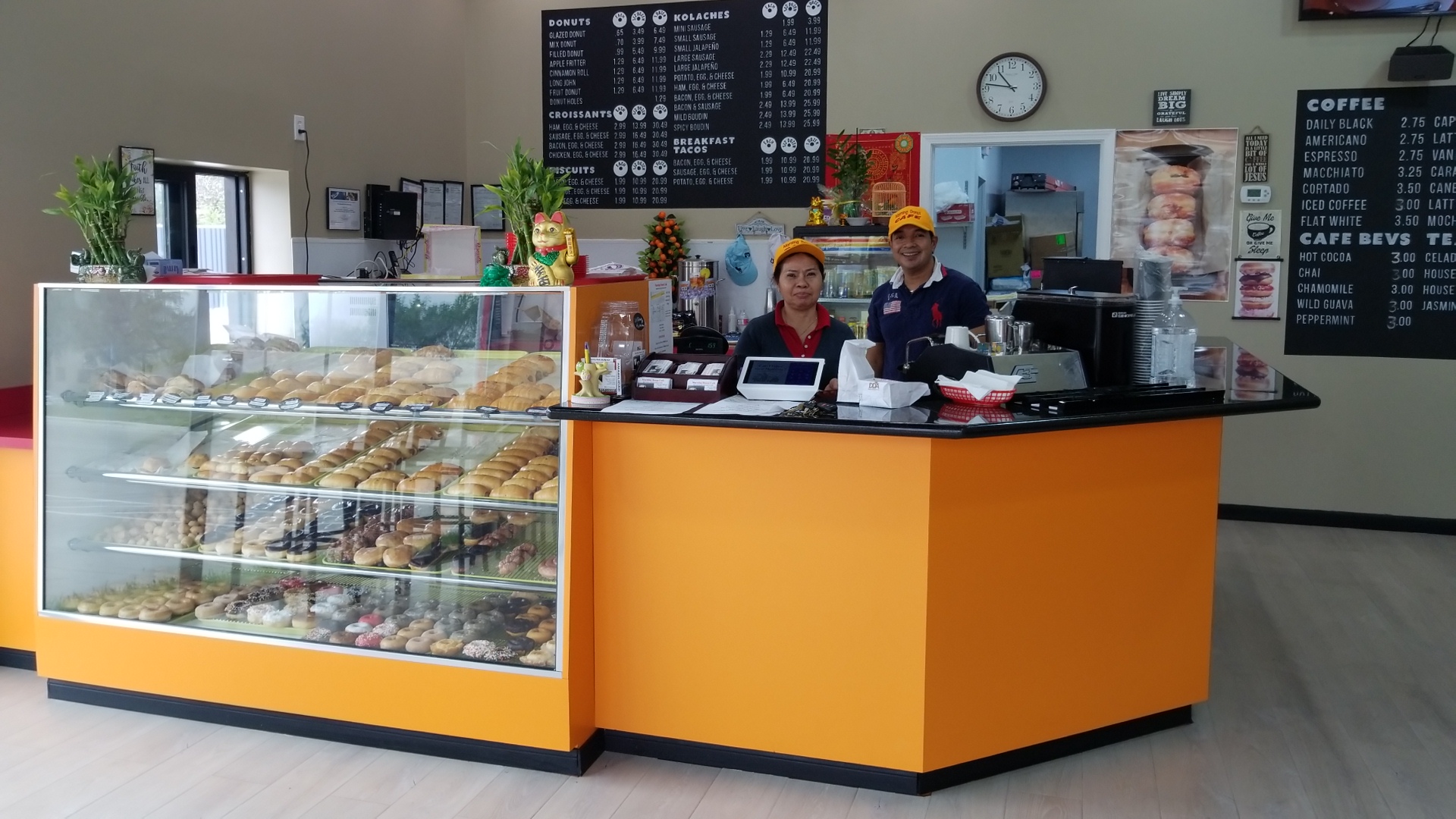 The coffee, however, was on point. A bit overpriced, however, very very nice people, great staff, and friendly as can be. I wish the donuts and kolaches were matching the kindness, cleanliness of the place, and nice set-up.
