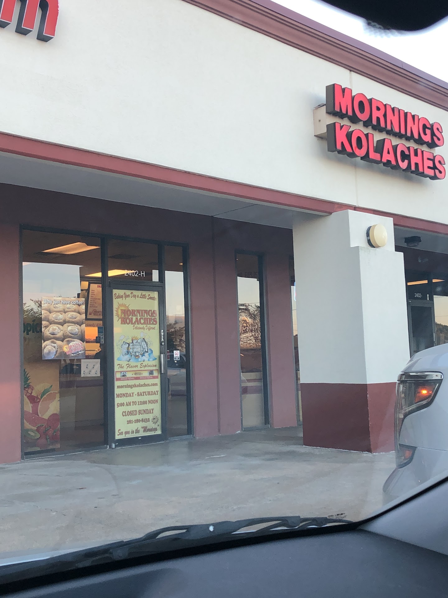 Professionalism, Punctuality, Quality, Responsiveness, Value I'm writing this review as a professional associate of Ed Salazar who is the owner of Morning's Kolaches I find Ed to be the best examples I know of Grace under Pressure; courtesy under fire, and unfailing friendliness at all times. Every member of the Morning's Kolaches staff at every one of the Pasadena Deer Park Laporte Friendswood and Clear Lake locations exemplify those same qualities too. And I have visited every one of them !! My favorite breakfast is the cheese danish with good hot coffee and it's the best in the world. The Salazar Family and Morning's Kolaches care about their customers. Take it from me all of the Morning's Kolaches locations are simply the best....