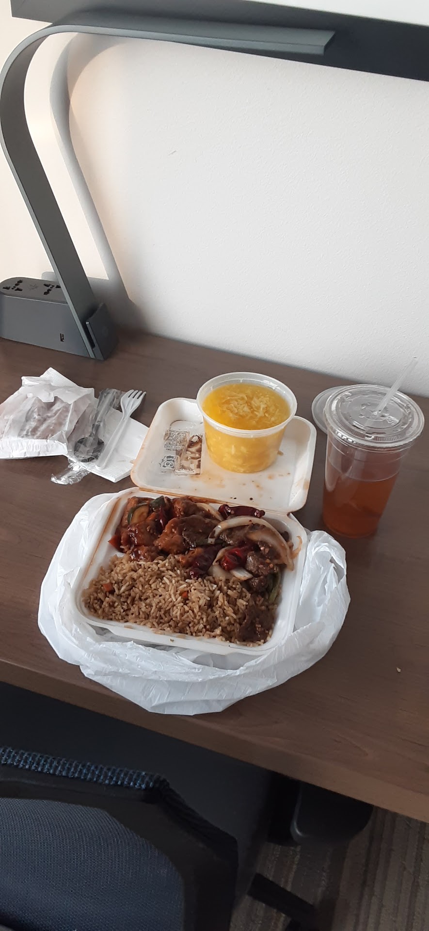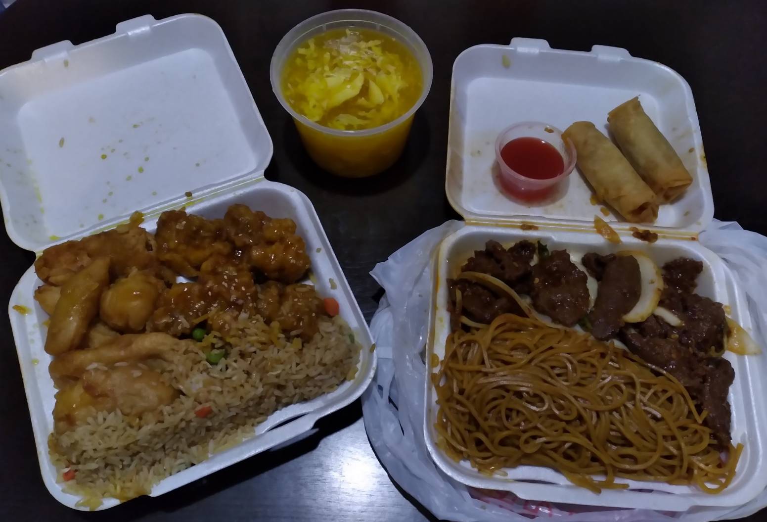 Read moreWe tried the general Taos, orange, and bourbon chicken, noodles/fried rice, as well as the cheese puffs and veggie rolls. The Taos and orange chicken tasted about the same, they did lack a bit of flavor and the Taos was definitely not spicy, both were soggy. The bourbon chicken was terrible, the recipe needs to definitely change, this was fully thrown out since we definitely didn’t like it. The noodles tasted ok but lacked veggies, both our plates had 4 veggies combined. The fried rice was not that great the recipe needs to be worked on, this was also thrown out. The veggie rolls tasted terrible, they have some kind of mush in them and hardly any veggies, after one bite they got tossed as well. The cream puffs were ok, but kinda soggy and oily. The food looked kinda old like it had been sitting there for a good while. Overall the customer service by the Hispanic lady and the Asian guy was great, they accommodated us on the request for one of the plates, but the dude at the register was just rude and made me feel uncomfortable because of the requested plate accommodation. After that interaction with the cashier we ended up just taking our food to go instead of trying to eat there. For this being the first time here we would probably not come back due to the taste of food and the bad customer service by that...