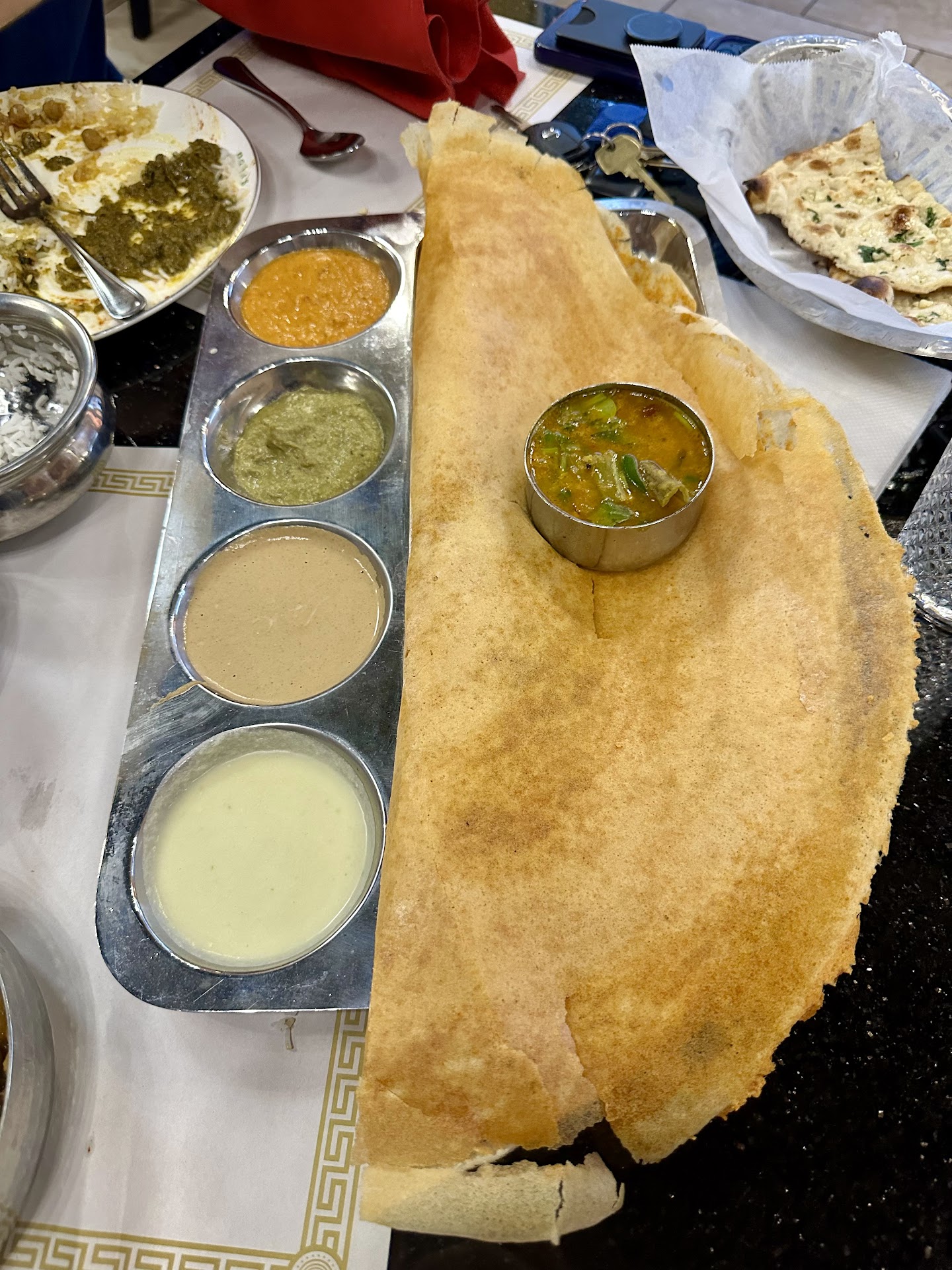 Overall - 8.5 / 10 I liked that they also have spice levels so if you want to go hard on the South Indian spice, you can level it up. We did everything medium , not mild, and there was a spicy level. Medium was 100000% manageable. Spicy might have you sweating a lil bit. Would 100% come back especially for the dosa...