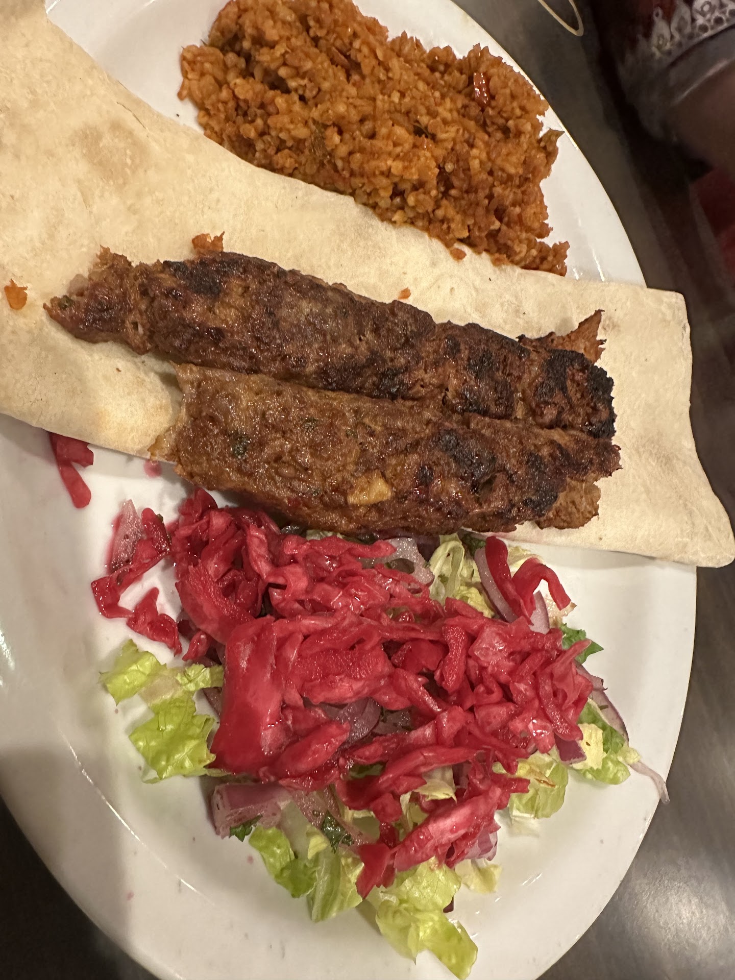 Read moreCame in on Wednesday around 1:20. Ordered 2 lahmacun (one spicy, one non spicy) and an extra mixed grill (with the lamb chop.) The lahmacun was $7 (not too bad, if it deserved the price) and the extra mixed grill was $25 (exorbitant imo.) The nonspicy lahmacun didn't really have much flavor, and the spicy one had just a hint of spice. Had I not squeezed the lemon juice and added the onion and lettuce (which is included in the order) I wouldn't have tasted much spice (pretty bland.) The mixed grill was the biggest ripoff I've ever seen. Sure, the chicken tastes very good (it has a smokey flavor) and the other meats also tasted ok, but if I'm paying $25 I want lamb CHUNKS and what came in the order was more like lamb tartare. The TINIEST pieces of lamb I've ever seen. Sure, it tasted good, but I didn't pay $25 to get a few chicken chunks, a single lamb chop, a couple flat pieces of ground meat, rice, fries, lettuce, and onions. I would pay something like $16, nowhere near their ridiculous price. Also, the fries tasted like old oil, definitely not clean oil. Finally we get to the service. The place was empty. There were literally 4 other people and yet it took 40 minutes for my order to be completed. I don't think I'll give them another chance. Maybe if they reduced the price to reflect their portion size, I'd consider going back, but honestly for the $42 I payed I would have gotten much better food...