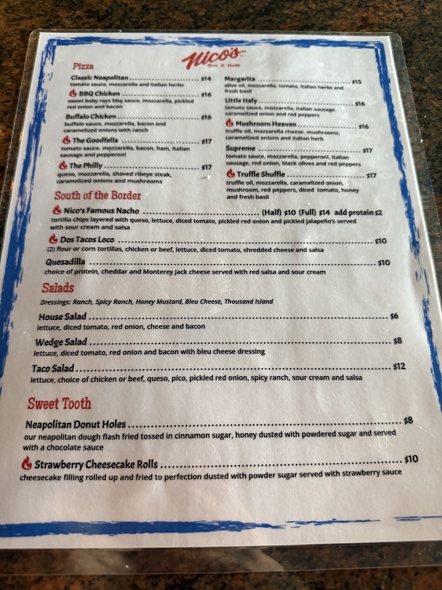 Read moreNico's has a very chill environment full of entertainment, amazing bartenders, and a phenomenal kitchen staff. Big screens for the sports lovers, Karaoke, pool tables, darts, and plenty of room for you & your guests đ You can tell that the head chef has an immense passion for what he does because it shows in each dish that leaves the kitchen. They even have a garden, so you get fresh ingredients, guaranteed! Stop by and give a little of everything a try, you won't be disappointed â¨ď¸