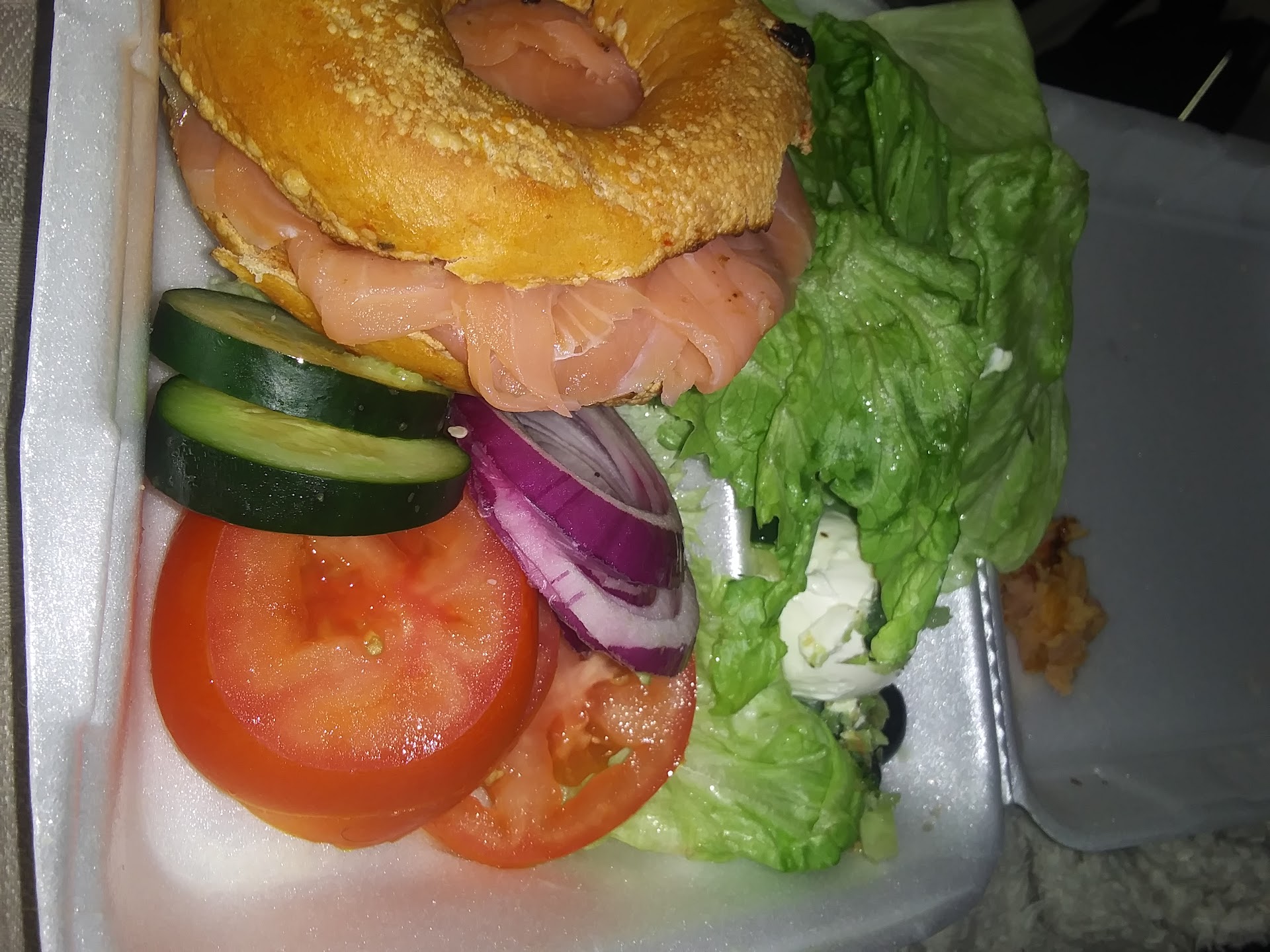 Read moreHighly disappointed.. To say the least.. (Sorry about the spit out food on the tray in the photo) My order was the lox on a sun dried tomato bagel, through doordash. The reviews for this place are great so i was pretty excited to check them out. Also how can you mess up a simple salmon lox sandwich lol. I've learned today you can and it could go horribly wrong. My first bite I didn't add any condiments (cream cheese, tomatoe, lettuce etc.) I just wanted to enjoy the bagel and "Delicious" salmon lox. After my first two chews The first thing that hits me is this rancid unnatural fishy taste then a ridiculous over load of salt, so my mouth is just fillled with a combination of disgusting rancid fish and a sh*t load of salt. The bagel was pretty much non existent at this point I couldn't even taste the bagel. At first glance it was great all the vegetables looked fresh and crisp NO weird odor coming from any thing and there was plenty of salmon! I get lox in multiple different states and cities and I've never experienced anything so foul. I called them just to let them know SOMETHING WAS WRONG! I was Pleasant of course, explaining to him that I didn't want anything in return but there was a major issue with my order. First he kept trying to explain to me what lox is. Which I'm already pretty darn familiar with the process. He eventually stop cutting me off and listened and ended the conversation with "Okay, Thank you. Sorry". ?????? I would just shy away from this place altogether. If you look at my reviews I try not to leave places a one star review because I get it.. You're trying to run a business and Things may happen sometimes but this was truly inexcusable. (And of course doordash refunded me...