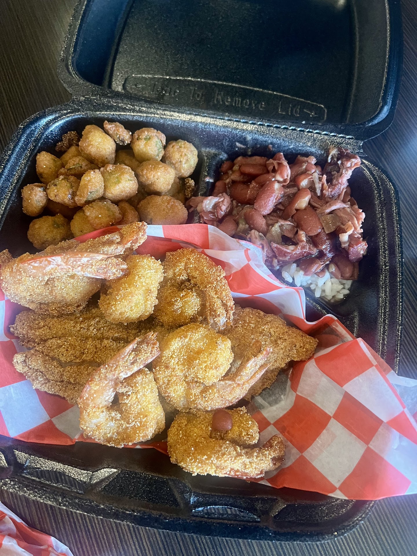 Read moreFirst of all, letâs cut to the chase! They were playing my jams the whole time. đ¤ I husband kept telling me to stop singing and dancing. đ Love it! Secondly, someone was cooking in this kitchen!!!! If you are looking for something different and delicious to eat. Try this place. I love that they cook their fish and shrimp in cornmeal. Yummmyyyy! The rice and beans had just a little kick in it. I forgot to take a picture of the Cajun butter hamburger though. I took off the top toasted bread so my daughter could taste it.( she is allergic to a lot of ingredients) She absolutely loved the burger and she is picky eater. My husband said they could have use a little of more sauce on his side of the bread, but you could ask for more on the side. My son ate all of his food and started to eat my husbandâs as well. I like the fact they you are served in to-go trays because I never finish my food. Great idea! We also got some desserts.I tried a little bit of everything! Mac and cheese and okra was on point. Ohhhhh the cornbread!!! Mouth watering. We will definitely be coming back. The beautiful lady that took our order was very pleasant and kind!!! The right person in front will bring back your best and loyal...